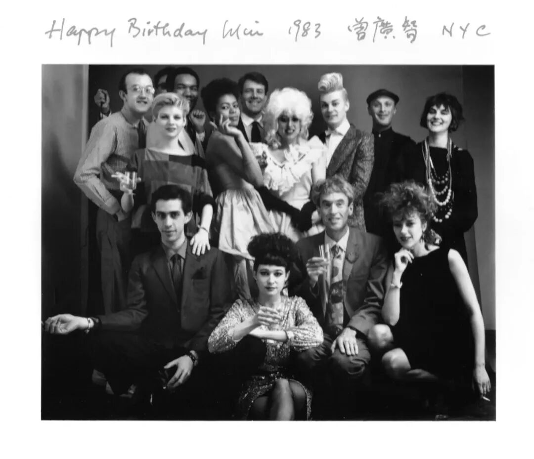Club 57的一些常客,包括站在最左边的凯斯·哈林,白色蓬巴杜发型的John Sex,和跪在最左边的奥利弗·桑切斯 (Oliver Sanchez)