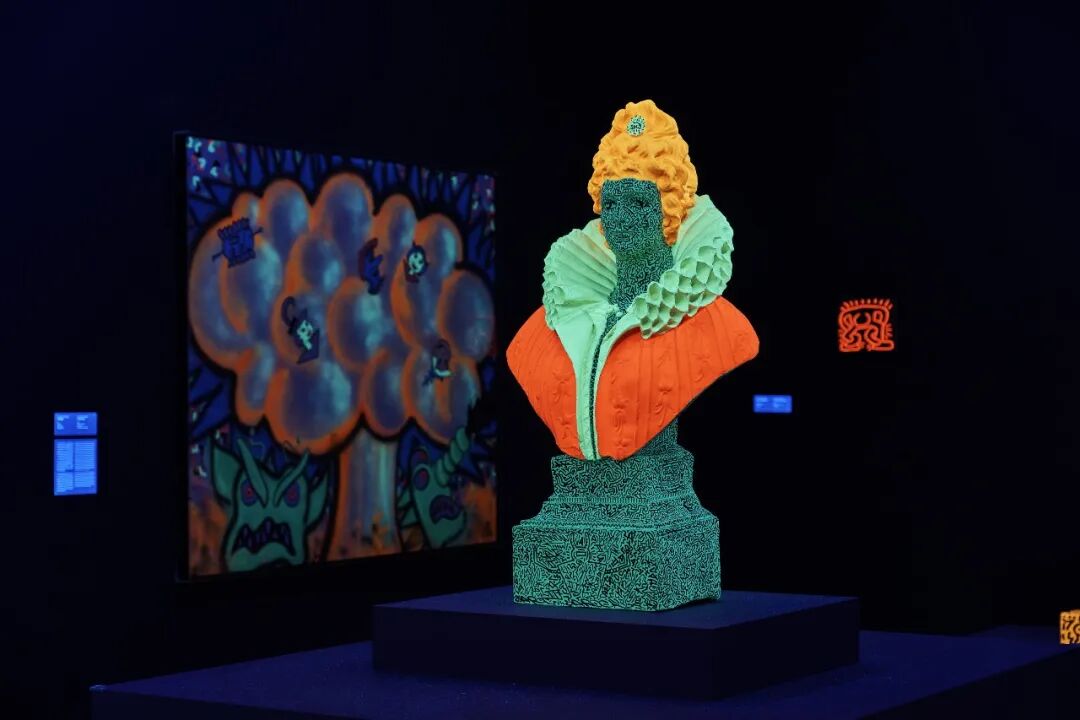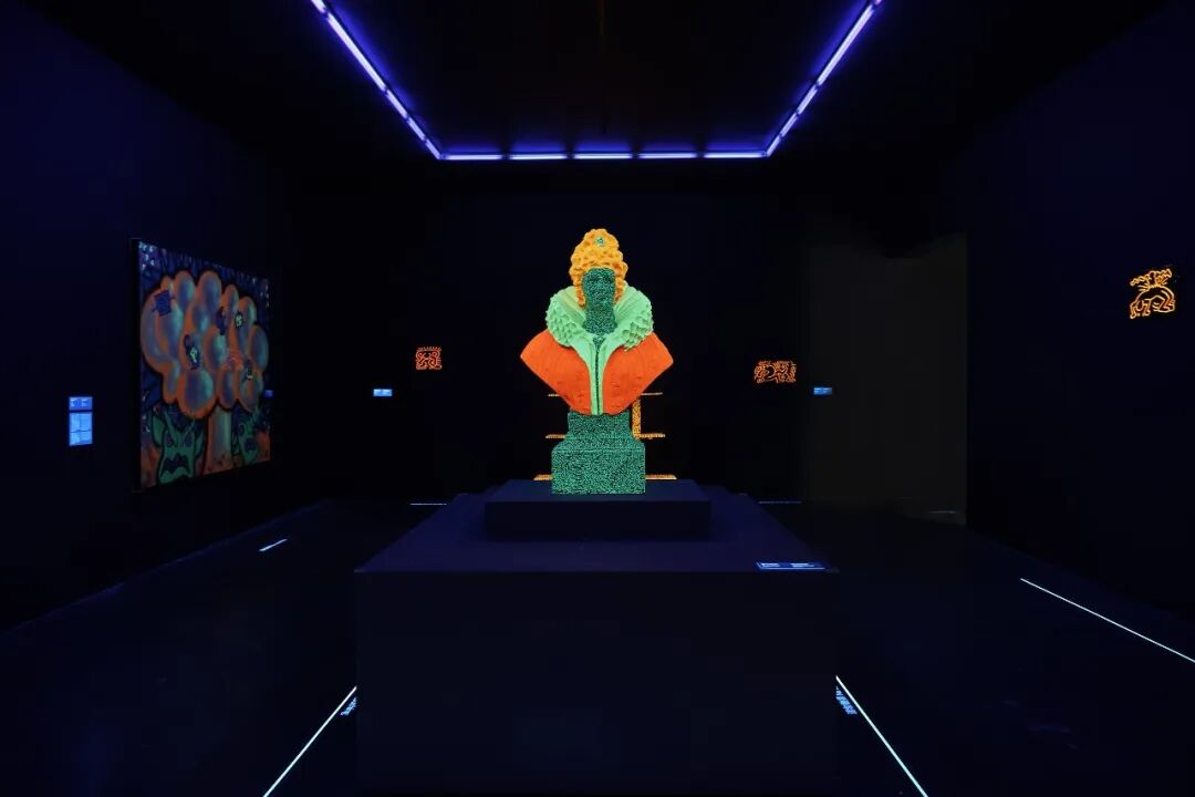 “下城往事:1980年代的纽约艺术现场”展览现场“黑光”单元特别呈现了Day-Glo荧光颜料在黑暗中的特殊效果