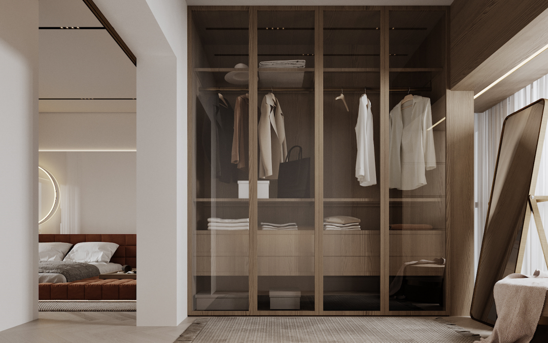 衣帽间与主卧相连,合理的收纳规划,秩序井然。