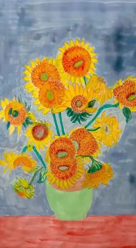 这是临摹的梵高《向日葵》,