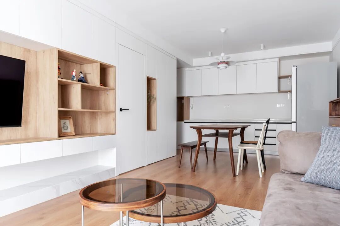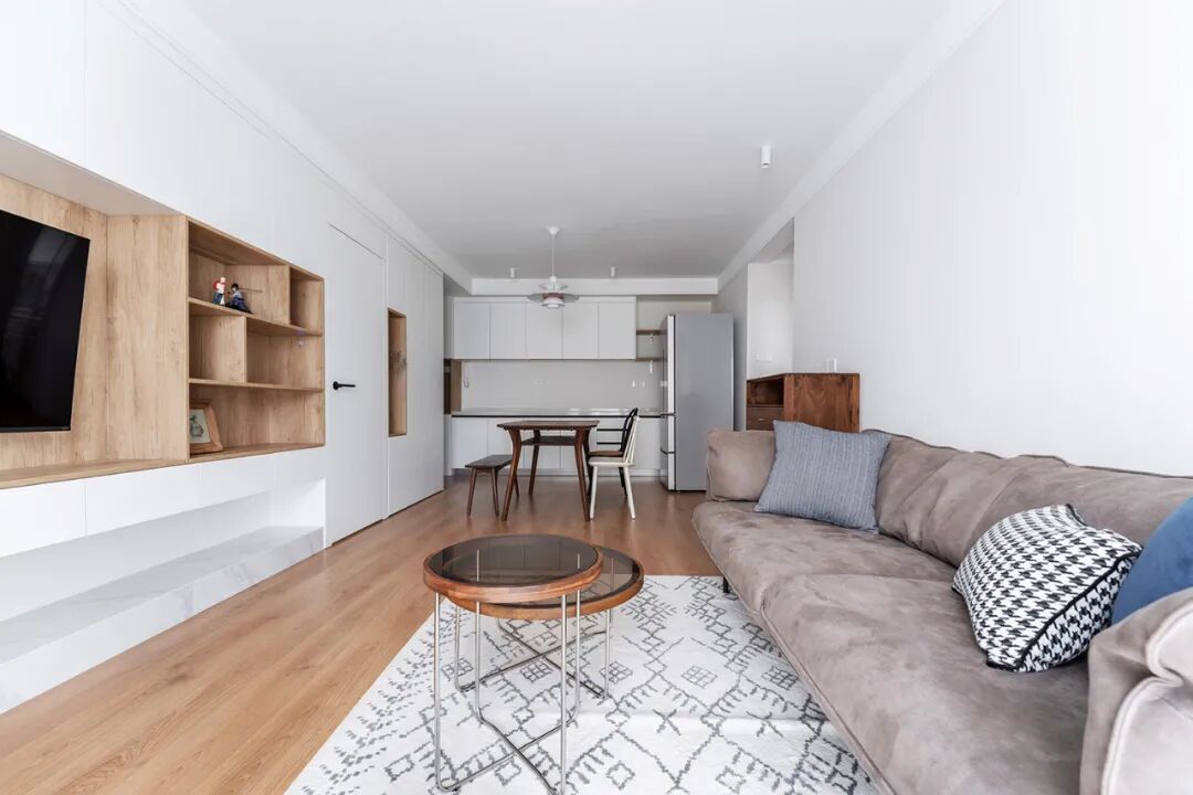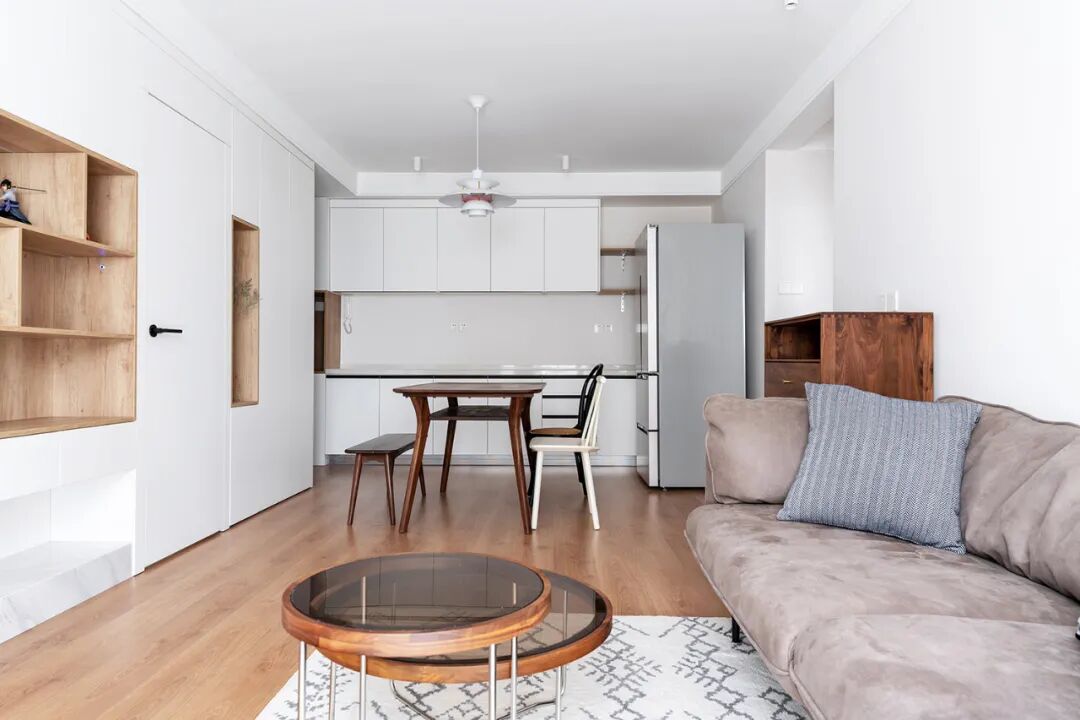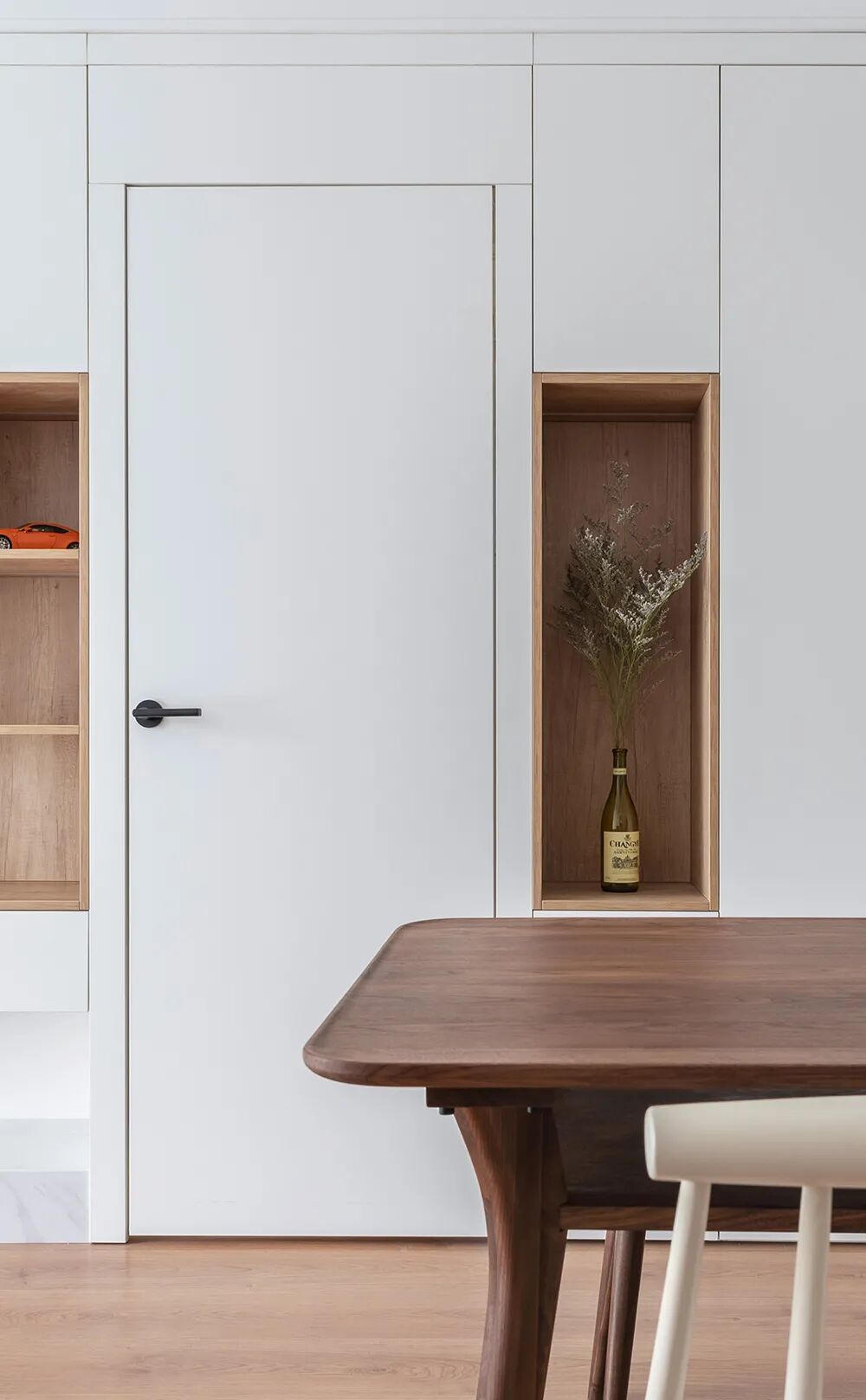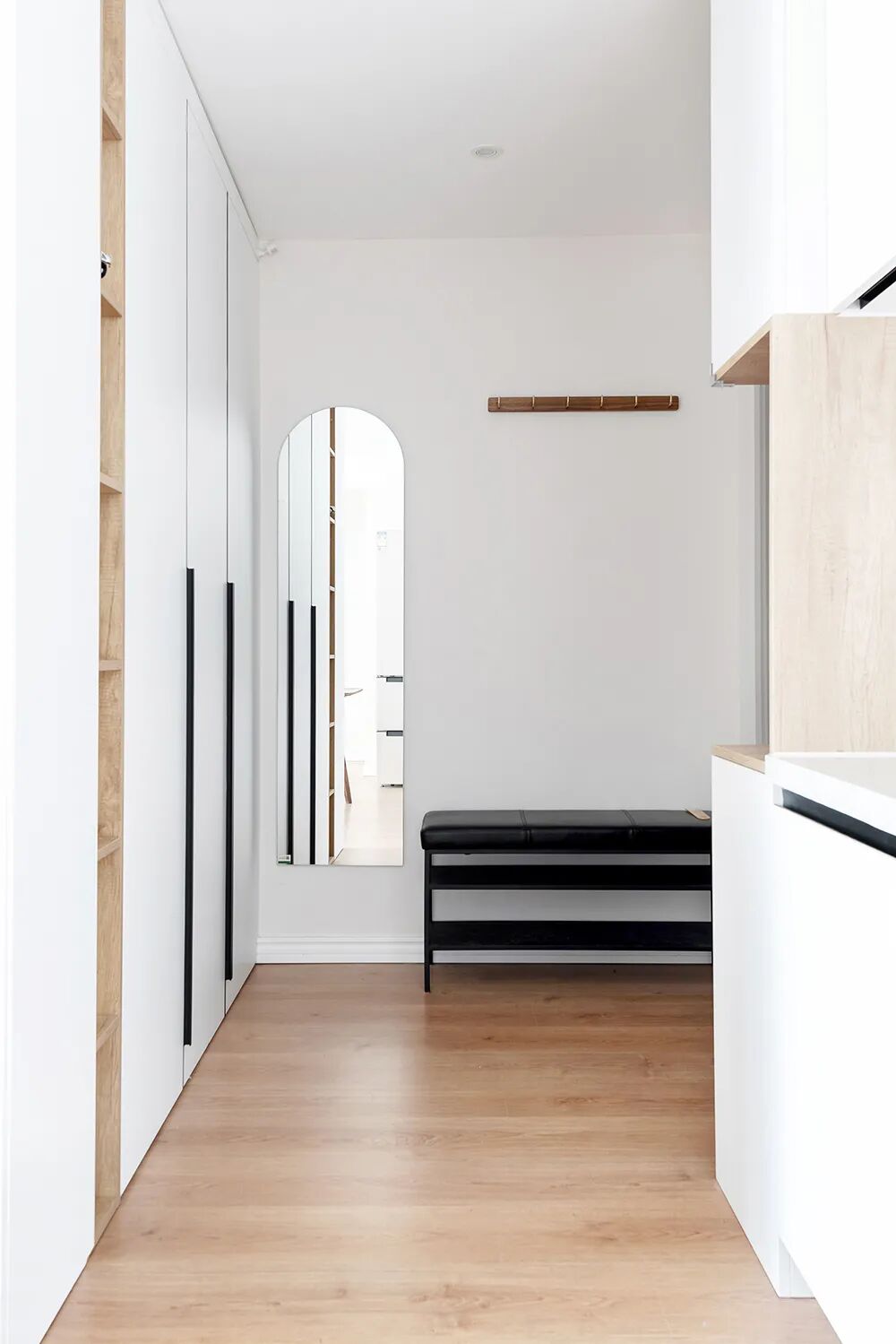 作品集2024-01-02 80㎡自然简约日式+北欧风两居室,一次性做足收纳,再住十年都不会乱的家! 这是一套面积为80平米的两居室,屋主是一对新婚夫妻,对储物有较高的需求。门厅需要大量的储物收纳,客餐厅的布局要合理。卧室保留一个常规主卧,次卧以多功能的形式出现,兼备书房,父母临时的客卧。风格上面喜欢日式和北欧相结合,最终所呈现的家实用温馨且舒适,好看好住! 图赏 ▲原始结构图 ▲平面布置图 | 玄关 | 正对入户门的是一排到顶的衣帽鞋柜,进门右手边有舒服的换鞋凳和整理衣冠的穿衣镜,使用方便,功能齐全。 | 客厅 | 玄关右侧进来是简洁宽敞的客餐厅,整个空间通铺木地板,顶面无吊顶, 简约、温馨。 大大的落地窗,给客餐厅带来了充足的采光 。高脚沙发搭配玻璃细脚茶几,为空间增加了轻盈通透的感觉。 客厅电视柜、次卧房门和餐厅收纳柜在视觉上整洁统一,在层板和电视柜镂空部分增加了灯光层次,增加温馨感与层次感。 电视背景墙,放置65寸电视,旁边并且放置手办区域。 在窗口处增加了一面镜子,让空间更为丰富,更有延伸感。 | 餐厅 | 餐厅形成环绕动线,空间上更能放大。常走路的一侧设置矮凳,方便通行,并且规避遮挡。 客厅餐厅西厨互为一体,增加家居空间的交流感。 餐厅的西厨设置了一整排的台面和吊柜增加储物。 | 厨房 | 光线从窗户直接照射进来,让厨房充满阳关的温暖。合理的洗切炒顺利,方便大厨施展厨艺。阳台设置家政空间,以及杂物收纳的区。 | 主卧 | 主卧背景为脏粉色,搭上白色的衣柜,柔灰色的窗帘,使空间显得安静,静谧,柔美。 定制整排落地衣柜,满足居家生活的储物需求。 卧室有一个小飘窗,是一处不错的私人休闲之处。 阳光穿过飘窗,撒落在床头,粉色带来温柔,金色优雅精致。 | 次卧 | 次卧兼备睡眠区与书房,临时办公、游戏都比较方便。定制柜采用白色木色相结合,使整体空间色彩统一。 柜子上面做了吊顶,柜子直接能顶到顶,让卧室更方正。吊顶平贴一层石膏板,增加空间层次。 | 卫生间 | 卫生间整体干净整洁,镜柜下面镂空方便放置小件物品。浴室柜镂空下面,也增加上了低位感应灯。由于卫生间的空间较小,选择放置的弧形的淋浴帘。 本文来自微信公众号“亚太室内设计”(ID:ytsnsj)。大作社经授权转载,该文观点仅代表作者本人,大作社平台仅提供信息存储空间服务。 TAGS: 增加室内设计空间设计餐厅 相关文章Kleoniki Andr…这是大王Day.281获奖作品《2020最佳图书…精选头像|搞怪来袭!安东尼奥·布埃诺 作品配色清新梦幻的场景插画,充…美国Jennifer Mc…【小鹏设计】设计小改/动力…【首发】地点空间丨打破空间…谢商家不坑之恩!只骗有钱人…