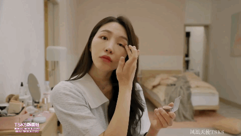 先是故作镇定地涂眼影,然后往前凑凑镜子,忍不住一股气涌起,眼泪滚下来,咬着嘴唇擤鼻涕,愣一愣神,又不知所措地拿起眼睫毛夹子,盯着镜子强忍眼泪,而后侧过头平定呼吸。