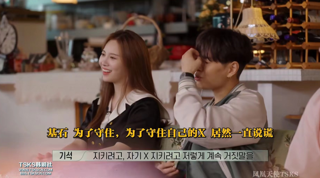 某次泰伊做下酒菜,娜妍一摇一摆靠过来,从后背揽住了他,智秀伏在一旁看得又震惊又不解:“她说过对他没有异性的好感,但她做出来的行动却充满着好感,对源彬也经常这样。”