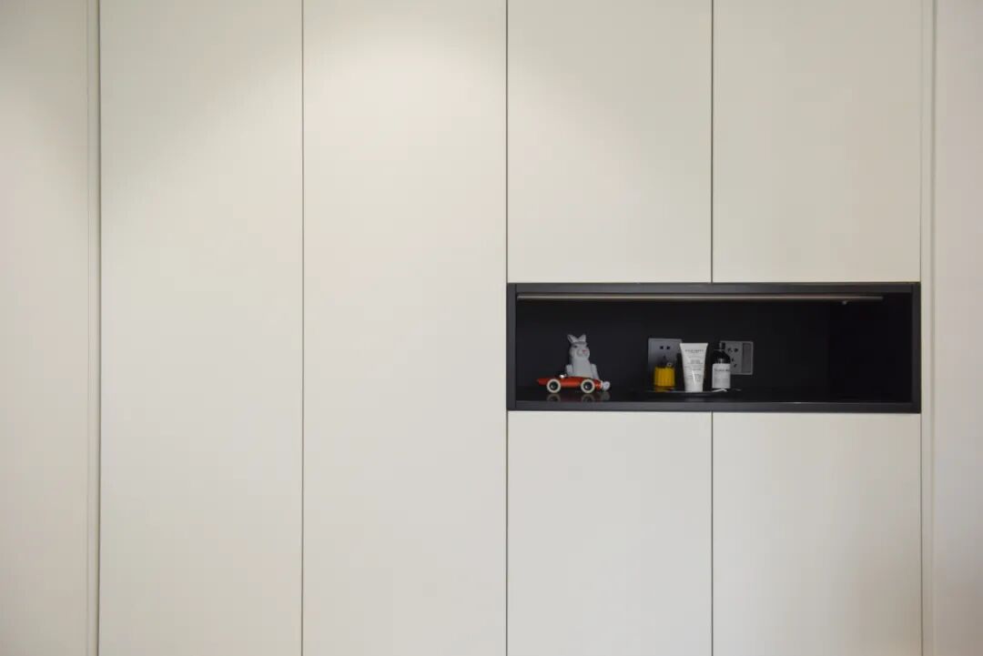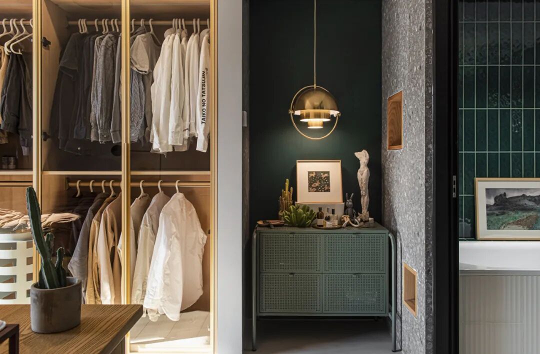 从厨房走向主卧,会经过一条走廊。交通空间很容易被人忽视,但设计师总能在走廊区域造出不同。