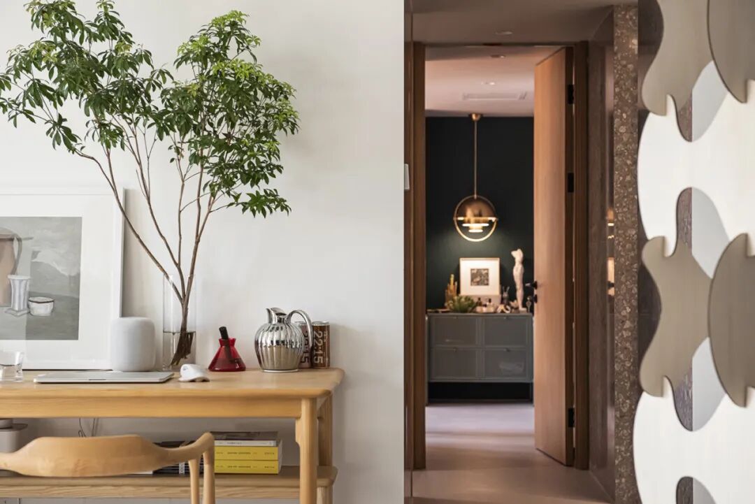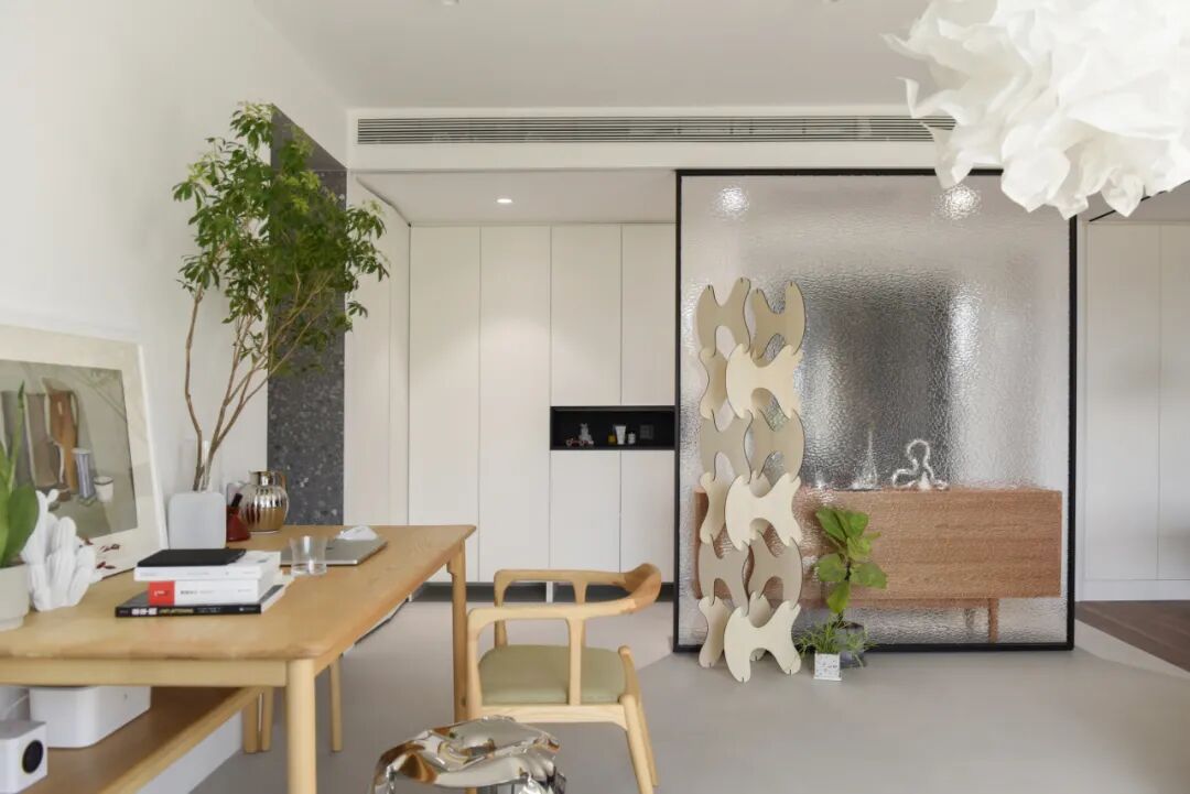 2、屋主很喜欢干净整洁的空间,并且有很多特别的摆件儿和挂画,设计师在整体简洁的家里,嵌入了很多小组团景观。