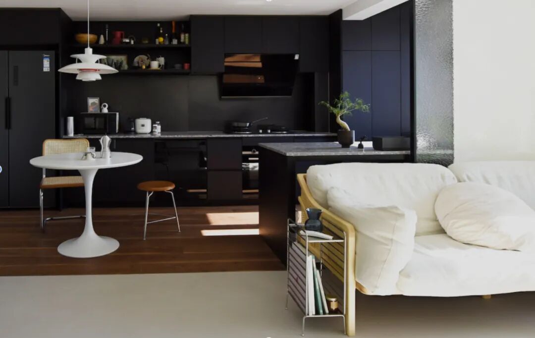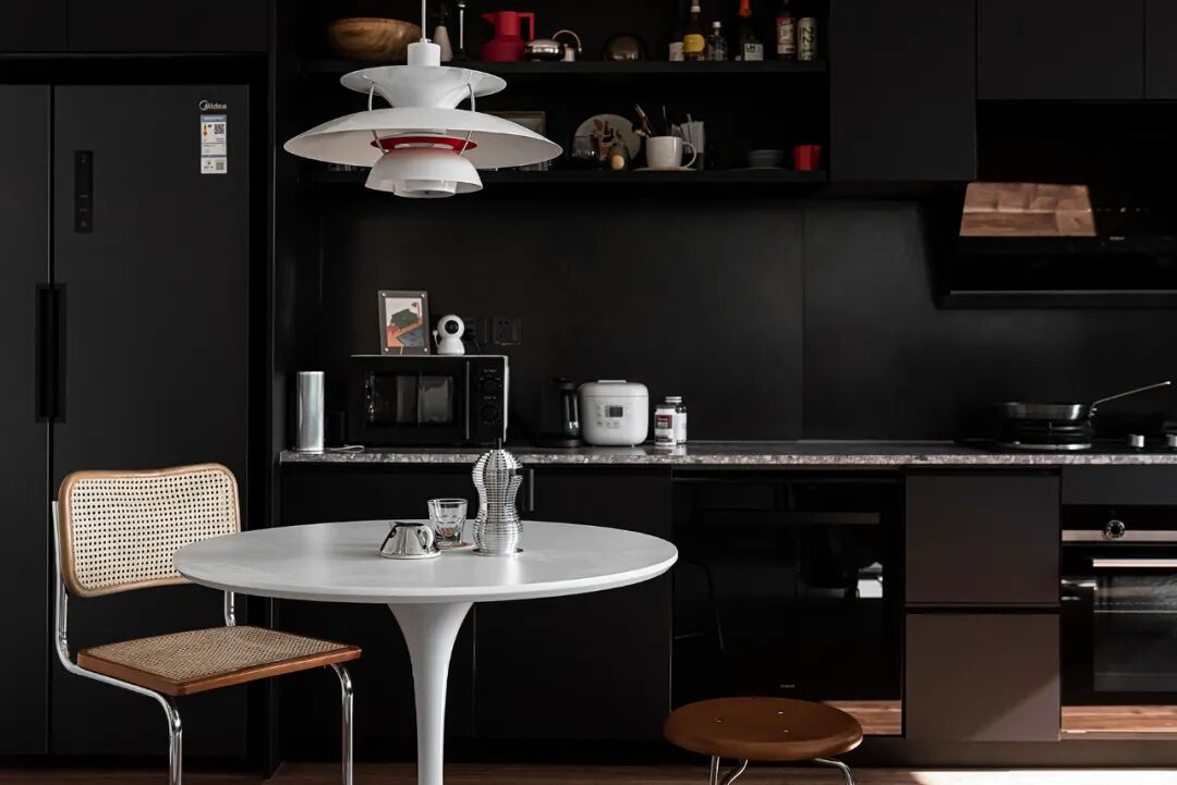 为了保证厨房色彩上的统一,屋主在厨具选择上尽量以黑色为主,哪怕是没那么好用也心甘情愿。