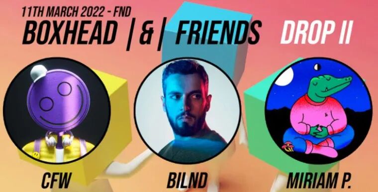 庆祝“箱头和朋友”NFT的第二期发布。包括三件分别与CFW、Bildn和Miriam Persand合作的新作品。
