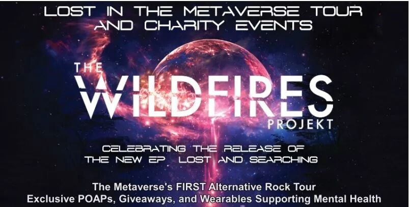 与来自 The Wildfires Projekt 的 Johnny 一起庆祝他们的全新专辑 Lost and Searching 的发行。将有纪念 POAP、赠品和 Wildfires Projekt 可穿戴设备系列(Phoenix Wings、Wildfires 连帽衫)的收益将捐赠给 HeartSupport(一个与成瘾和心理健康问题作斗争的非营利组织)。