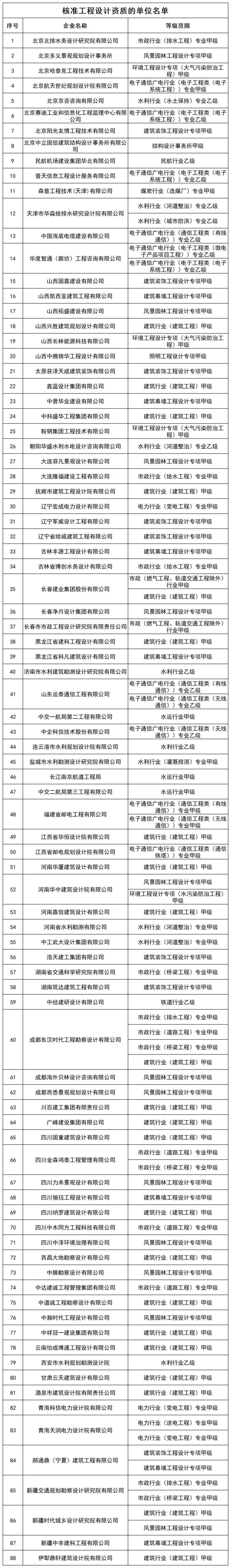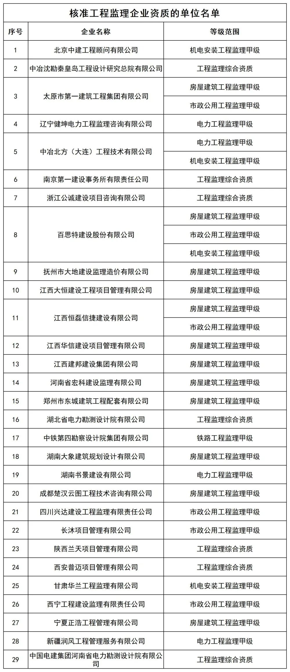 据住房和城乡建设部网站消息,近日,住房和城乡建设部公布2023年度第一批建设工程企业资质核准名单。其中,北京环安工程检测有限责任公司等13家单位通过工程勘察资质的核准;北京北排水务设计研究院有限公司等88家单位通过工程设计资质的核准;北京房修一建筑工程有限公司等144家单位通过建筑业企业资质的核准;北京中建工程顾问有限公司等29家单位通过工程监理企业资质的核准。