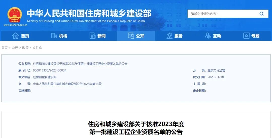 根据《中华人民共和国建筑法》及有关建设工程企业资质管理规定,现将我部核准的工程勘察资质、工程设计资质、建筑业企业资质、工程监理企业资质的单位名单(2023年度第一批)予以公布。未予核准的单位及原因可登录住房和城乡建设部门户网站–政务服务平台,点击办事服务中“申请事项办理进度查询(受理发证信息查询)”栏目进行查询。