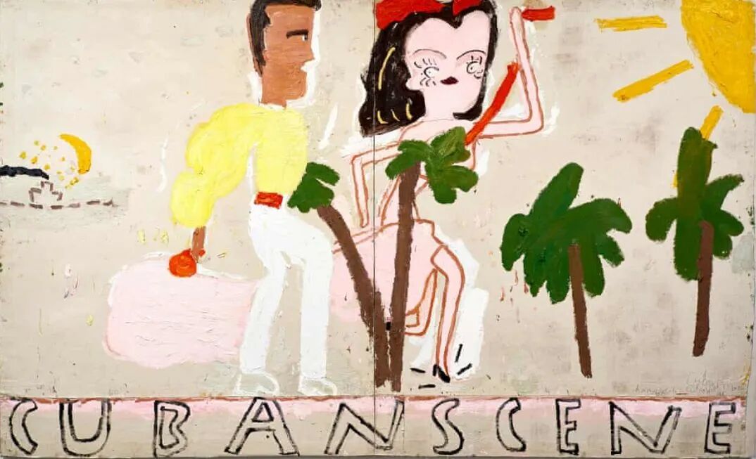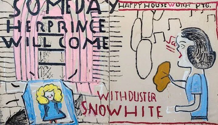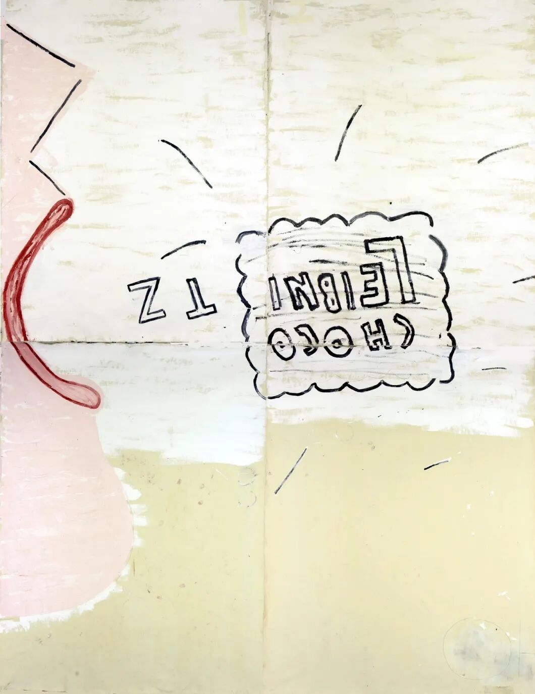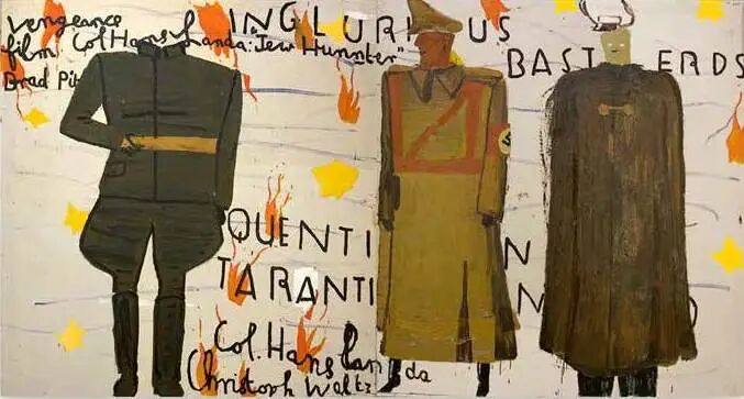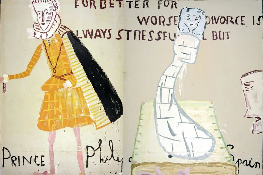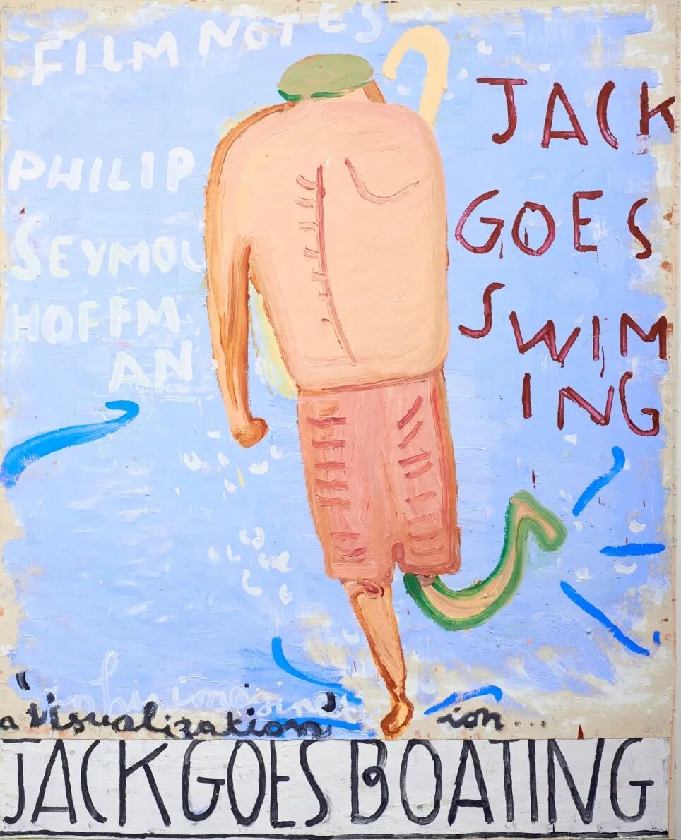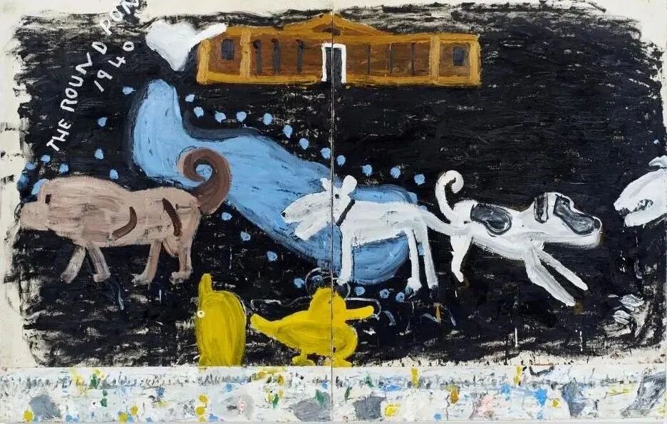 英国画家Rose Wylie生于 1934 年,1981 年毕业于皇家艺术学院,以画布上创作大型画作而闻名。对于每一个新的作品,Rose Wylie 都会选择一个特定的主题,比如运动员的照片、电影或传统的许愿画,然后生成充满自由联想图像和文本,有着直观、随心所欲的形象构图。Wylie 的画作并非出于特定的叙事冲动,而是出于纯粹的视觉刺激感,粗犷的人物塑造了一种开放方式。