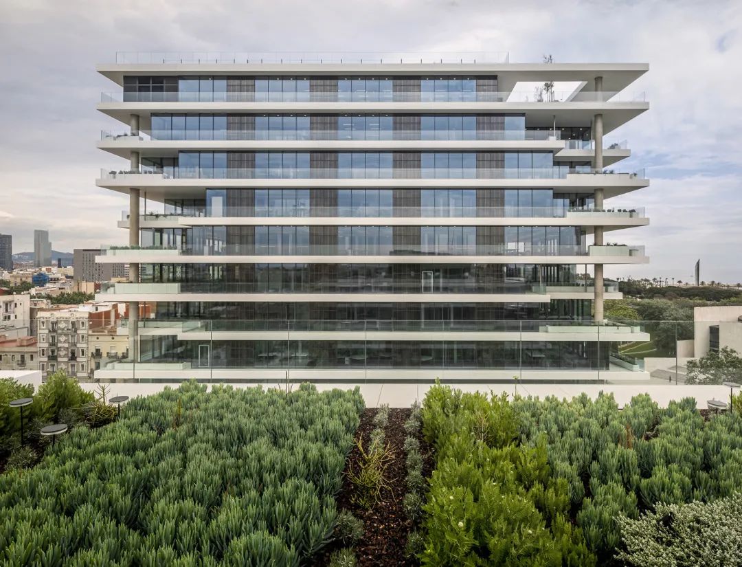 植被都采用了本地原生物种。部分屋顶空间还设置了太阳能光伏板,不过大部分的光伏板都位于大楼的立面上,节省了屋顶的面积。