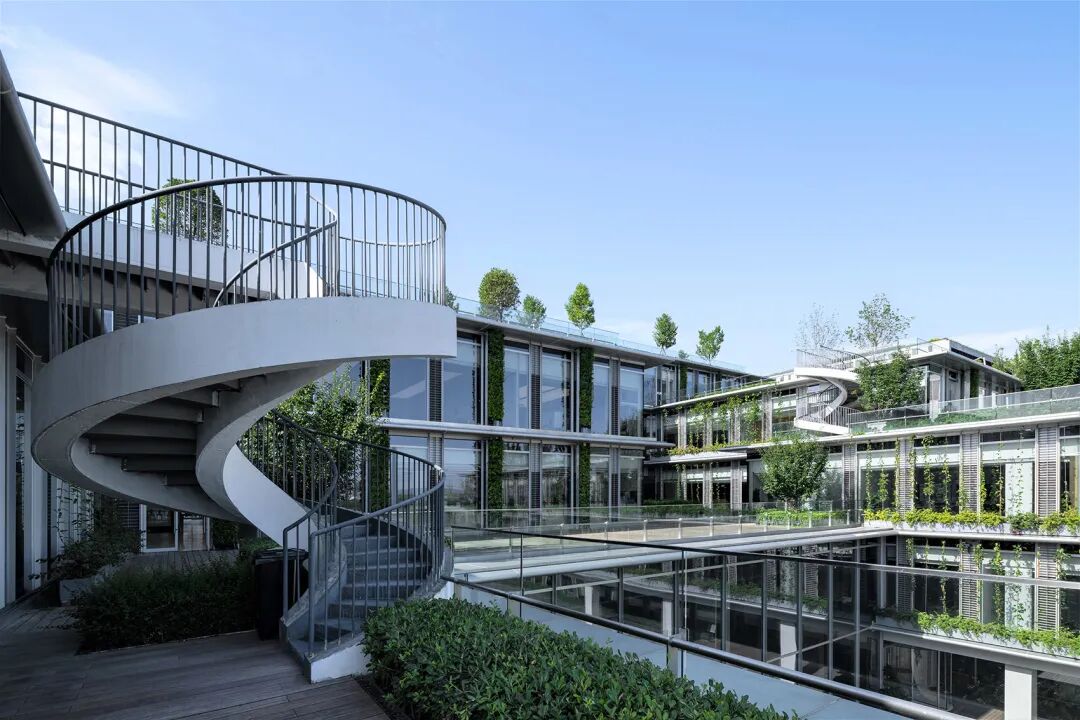 大量充满绿植的露台形成了360度的户外活动空间。办公室的露台空间,可作为社交休闲空间。塔楼的上部分体量呈现出白色的建筑结构,较低的楼层则被第二层表皮所包裹,以呼应周边的工业建筑环境。
