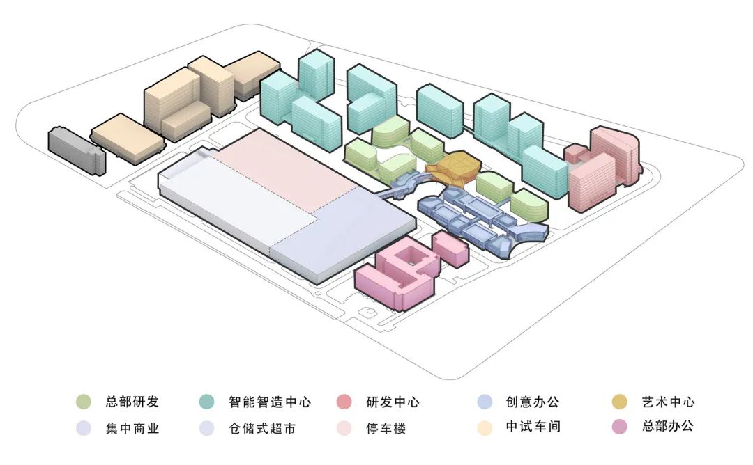 规划设计中应充分考虑园区的不同业态的组合搭配,创造空间立体、功能复合的、人性化、生态化的城市空间。