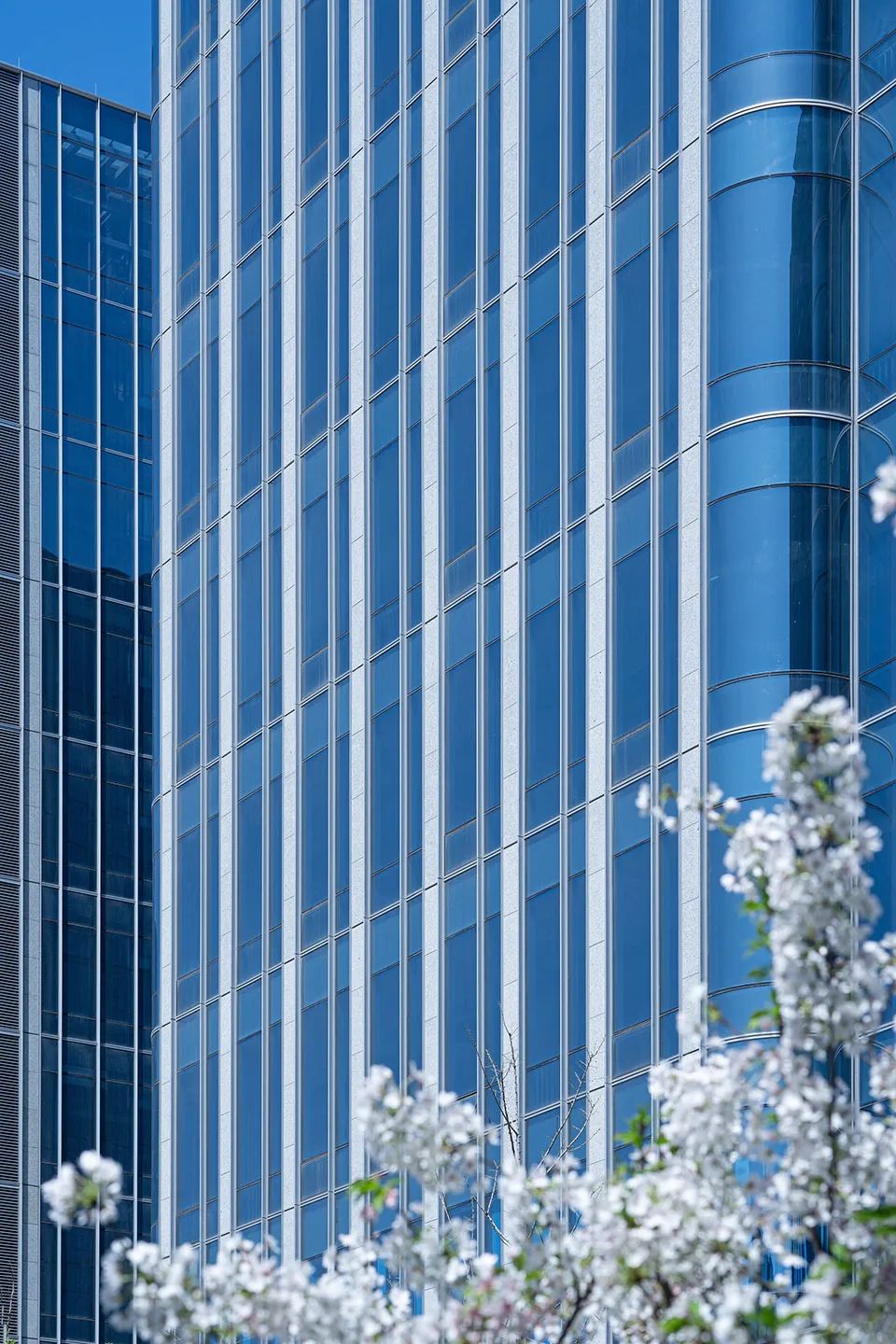 外立面采用了玻璃及颜色相近的石材、铝材,以材料的光影和肌理效果来塑造每组建筑的个性。