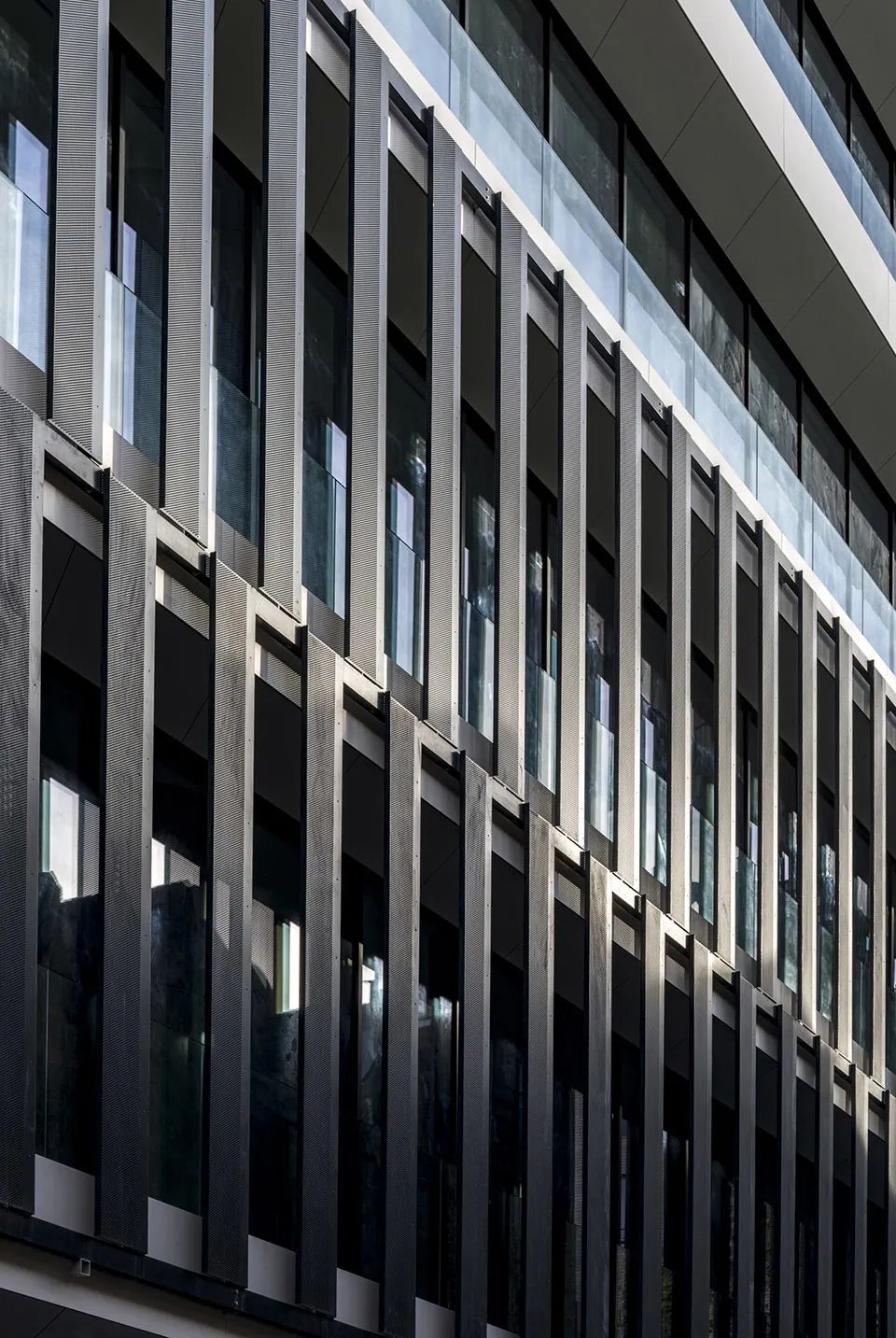 交错的排布形式为立面赋予了动态的变化,同时保证了底部楼层室内空间的隐私。
