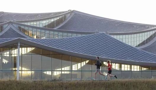 大跨度的檐篷则采用了“龙鳞”太阳能板覆层屋顶,配备了太阳能电池板。不透明的屋顶架构也提供了声学控制,上面的开口为内部空间提供了足量的日光,也避免产生过多的眩光干扰。