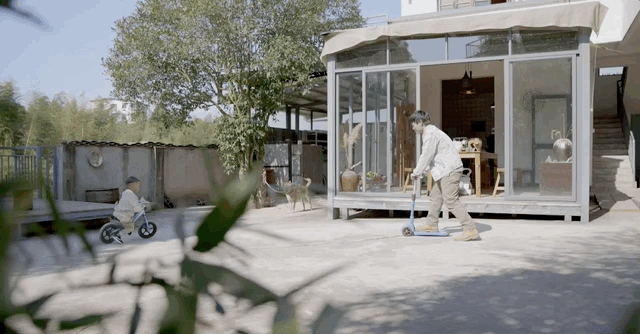 嘉恺本来就学雕塑,对空间很敏感,他觉得小孩需要自由地跑动、感受一些山的高低和空间的错落。“这是天然的美育。”他像是一个大小孩,自己喜欢行山,孩子就像小跟屁虫一样跟着他。“城市里像是一个个大大小小的盒子:公寓、商场、教室,小孩子长期待在盒子里,怎么快乐呢?”