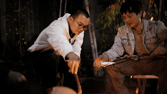 山里的年轻人们开始张罗着一起去雷禺和群生的院子烤火,他们生起火盆、吃水果、聊天,火势将尽的时候,在炉灰里埋进几个红薯,又在火盆上摆了网架,架了茶壶煮茶。又一天就这么过去了。