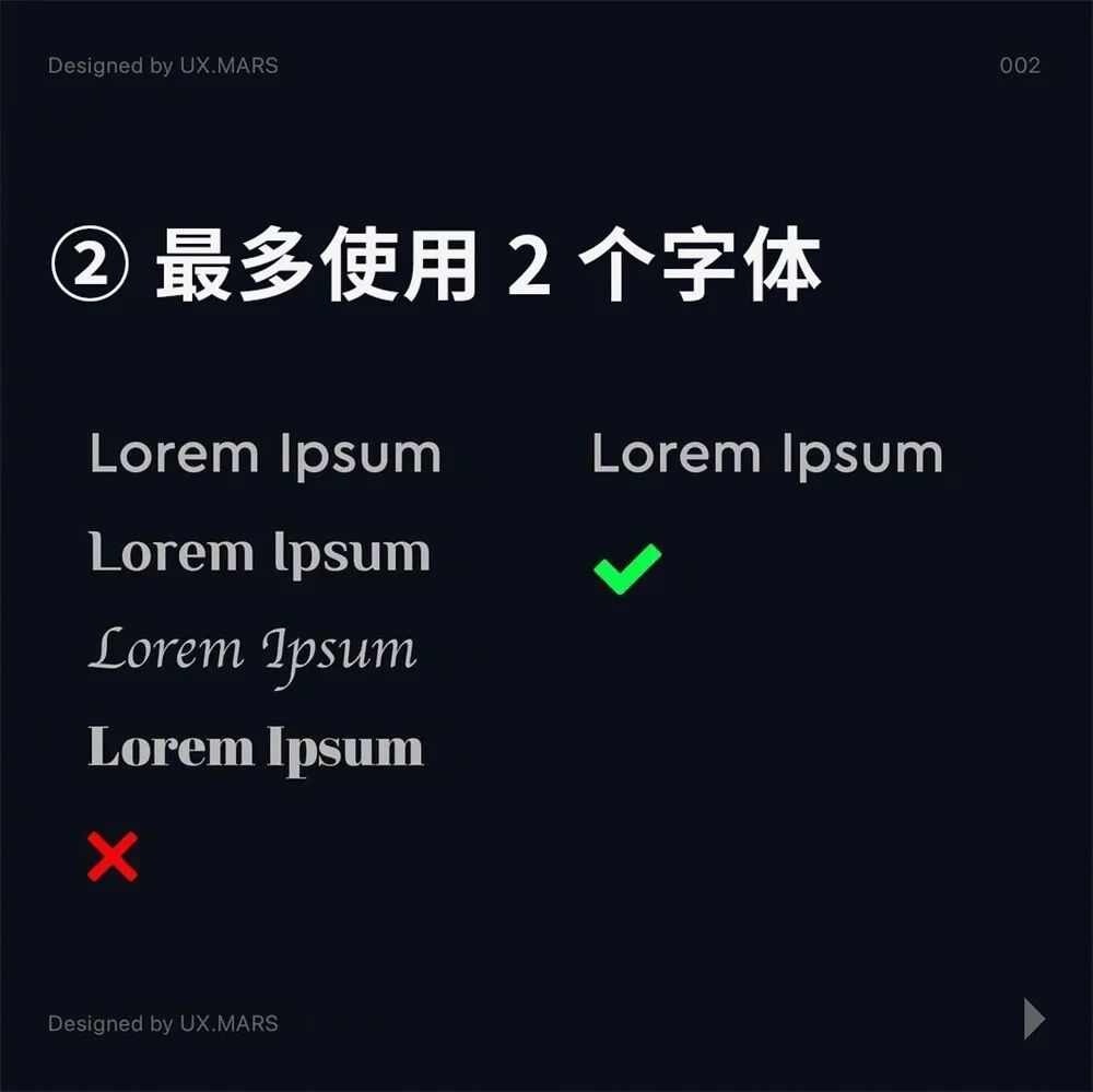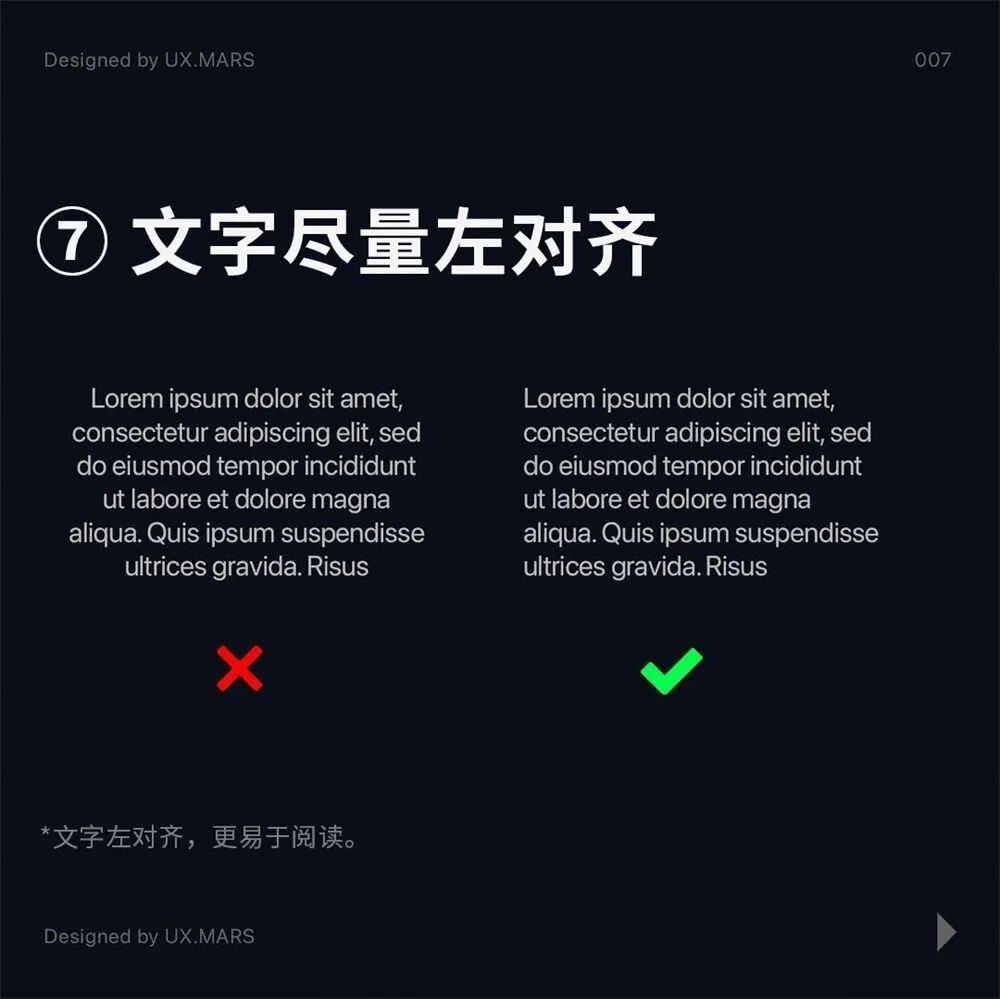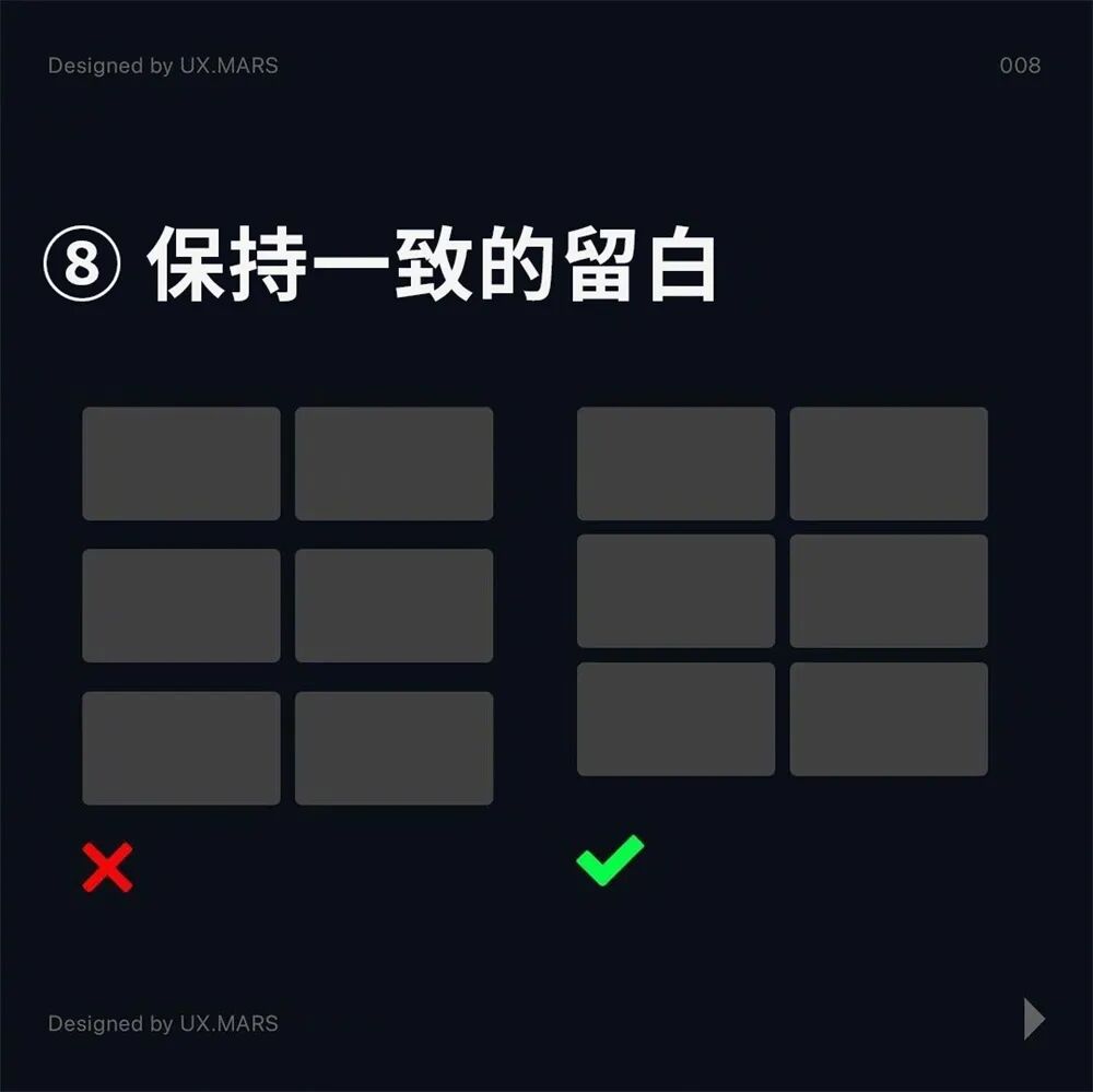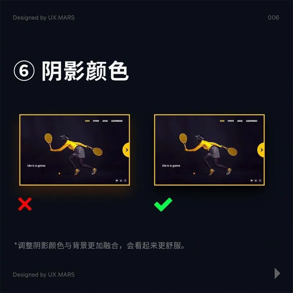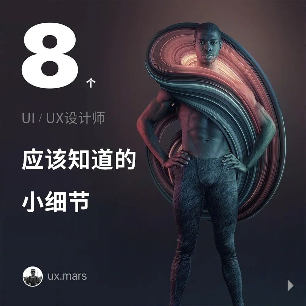 8 个基础的 UI / UX 设计师必知的小细节:不要使用纯黑、最多使用两个字体、字体重量保持一致、一致的字体大小、复杂背景叠加图层、阴影颜色、文字尽量左对齐、保持一致的留白;很多时候就是这些看似简单的小细节,决定了设计的质量