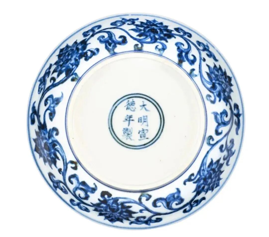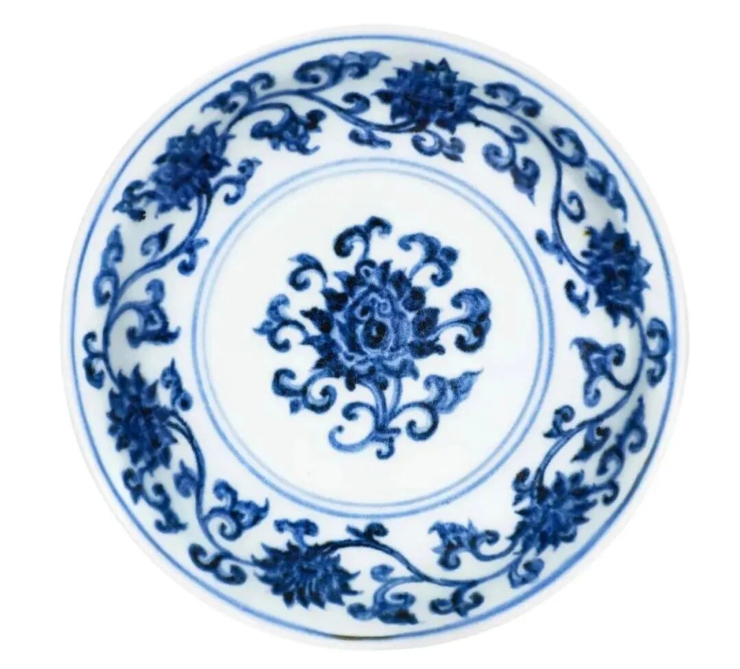 明宣德 青花番莲纹小盘 《大明宣德年制》款 15.3cm