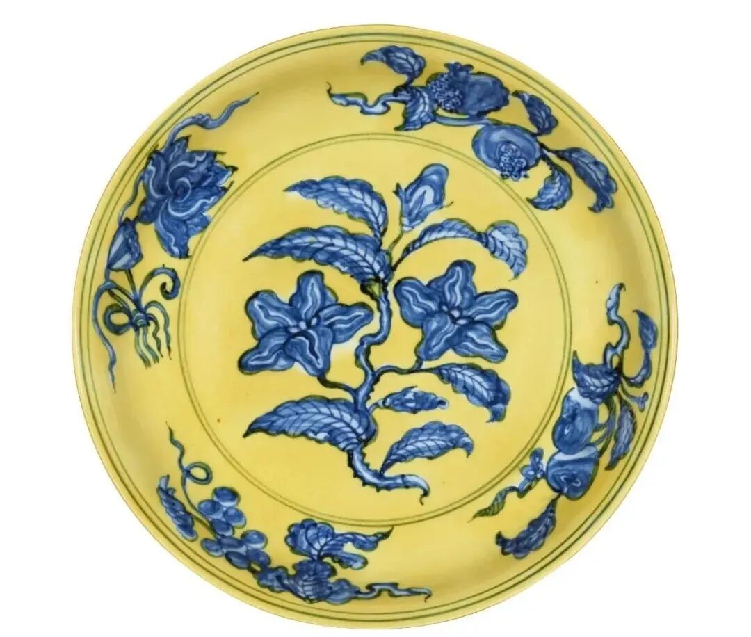 明弘治 黄地青花折枝槴子花果纹盘