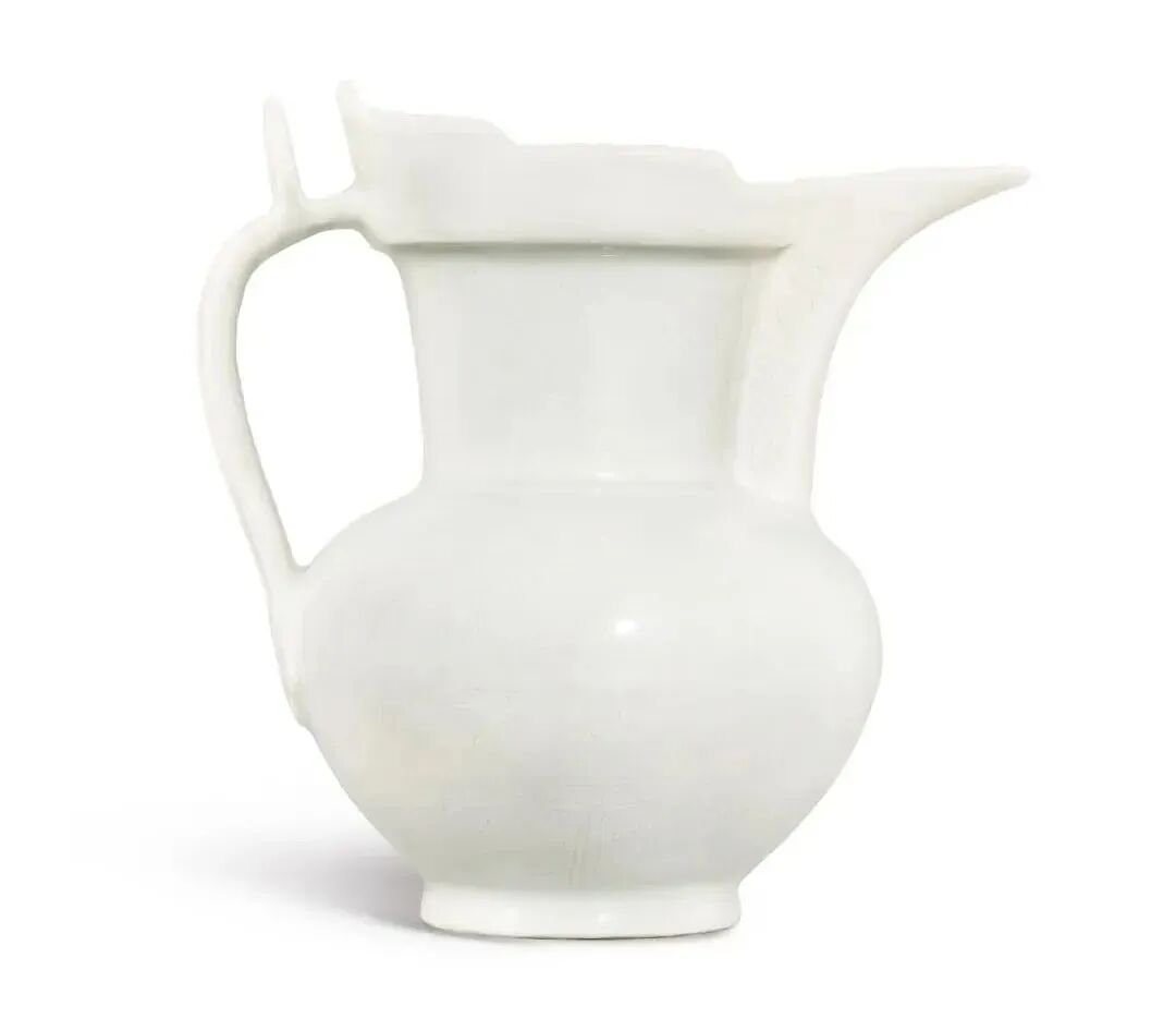 明永乐 甜白釉暗花缠枝莲八吉祥纹僧帽壶 19.5cm