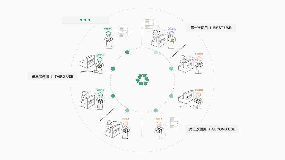 快递箱的顶部和底部巧妙地设计了胶条和易于撕开的封条,因此快递箱可以方便地打开和压扁存放,而每一组胶条和封条都使BOX+循环使用了一次。BOX+显著降低快递箱生产和回收过程中产生的碳排放,实现绿色可持续发展。