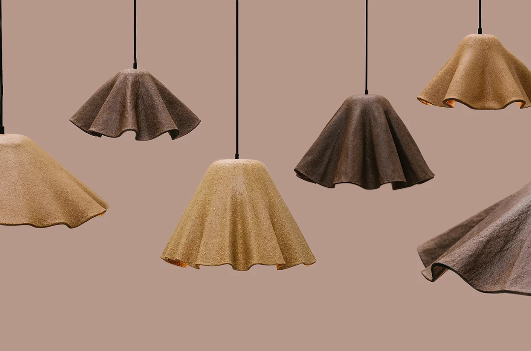 伦敦生物技术和生物制造初创公司 Biohm创造了一系列由 100%咖啡糠和橙皮制成的可持续灯罩,名为 Obscure,是开发/生物制造天然材料的一个典型案例。Biohm 经常使用多余的废料和副产品,通过在各种产品中替换塑料来减少塑料使用。
