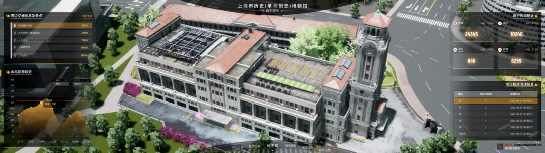 依托上海城市运行“一网统管”的框架和上海城市运行数字体征的理念,这个系统对上历博(上革博)及周边进行了超精细三维数字化复原,利用三维数字孪生引擎实现了博物馆大楼内外的1∶1三维数字孪生,并对接政府业务数据、物联感知数据、环境天气等多维实时动态数据,全面赋能场馆管理,让博物馆既聪明又有温度。