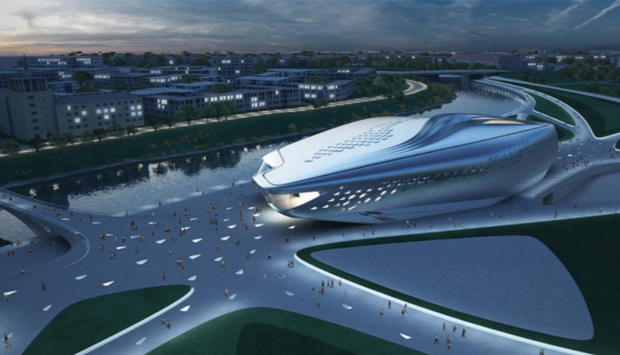 另一位解构主义大师扎哈·哈迪德设计的维尔纽斯古根海姆博物馆也有着异曲同工之妙。流线型曲线,戏剧化的形态,展示了扎哈对于未来建筑的看法。