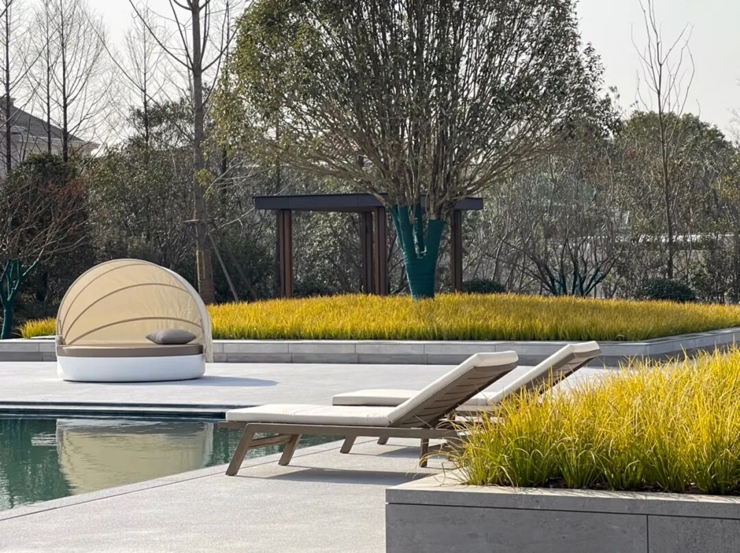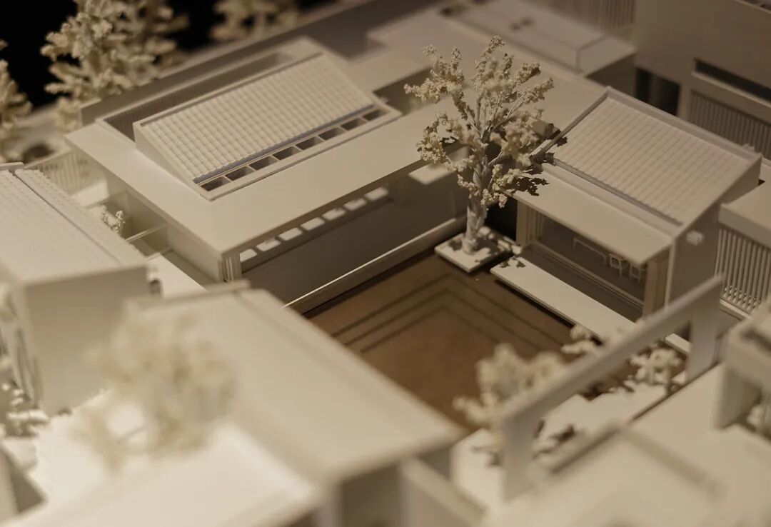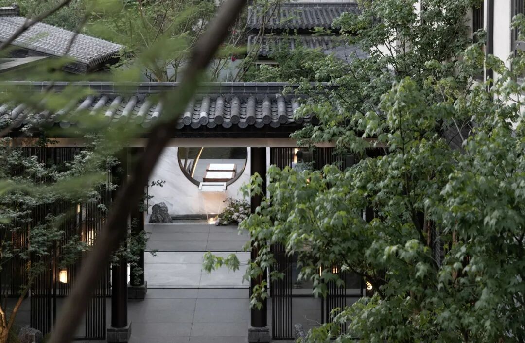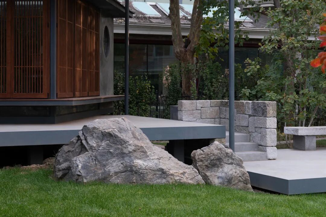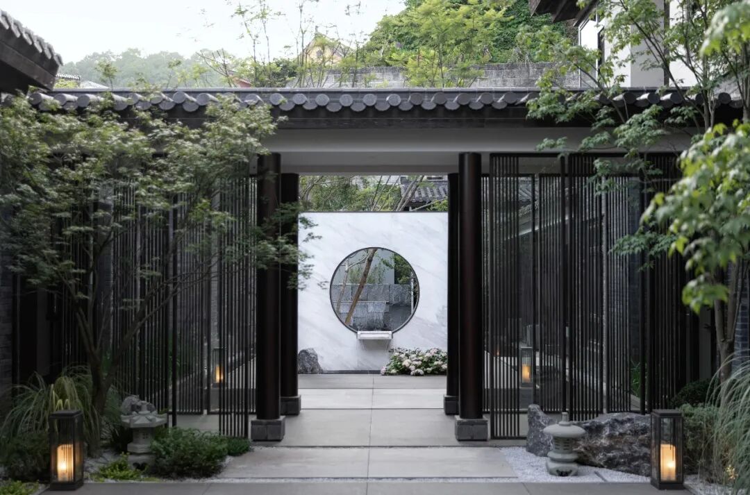 项目位于九间堂一期,临康厚街,虽未避市侩之嚣,但亦有陶渊明结庐人境之趣。不同于样板庭院的林泉高致之师古手法,用更契合建筑气质的现代手法结合当代崇尚的东方意境去塑造景观,从建筑,人与环境出发,去思考场地、建筑及现代人居的关系,最终营造一种极具东方意境之美的景观,又不悖于现代人居生活所需求的庭院生活,两者和谐统一,相得益彰。