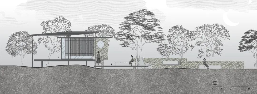 南园剖立面图  绘图-李欣宇,曹锦灿