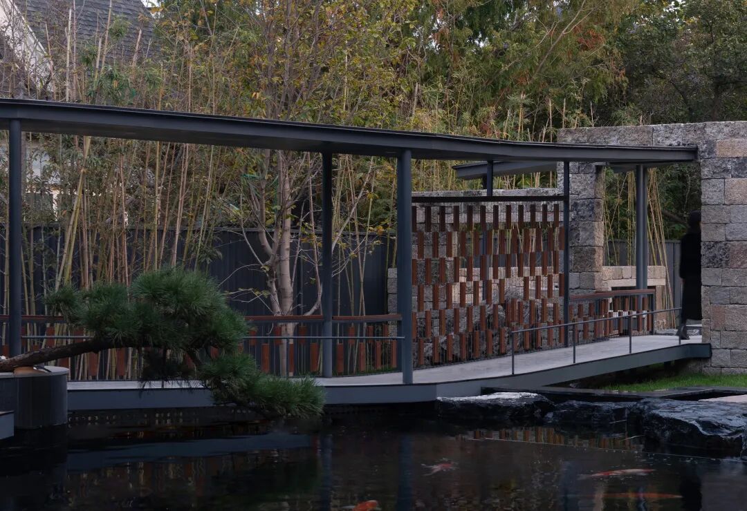 纵观整个项目,在整体景观设计中,采用了古典园林的游园空间结构,利用高差设计增加园林的竖向变化,拉长游园路线,设置节点景观来营造以小见大的空间感受,以常绿,开花,落叶乔灌木营造空间季相变化,达到四时之景不同,年年之景更胜。在造景手法中运用了障景,漏景,框景等手法,同时也借用了日式园林风格中的元素,包括现代园林风格的元素与整体园林空间相融合,打造一种具有东方园林意境的景观空间。