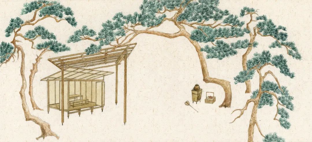 介亭原型是工作室在2017年设计一个轻质双屋顶结构的亭子,介园的建筑物以此为原型设计,园中松下横琴,围亭煮酒。我们便由此展开去构建一个内向的当代园林,在面对项目场地现状和园主人诉求的平衡中,以达到日常闲趣生活与诗意情境重叠的场所体验目的。