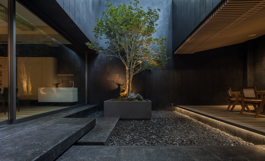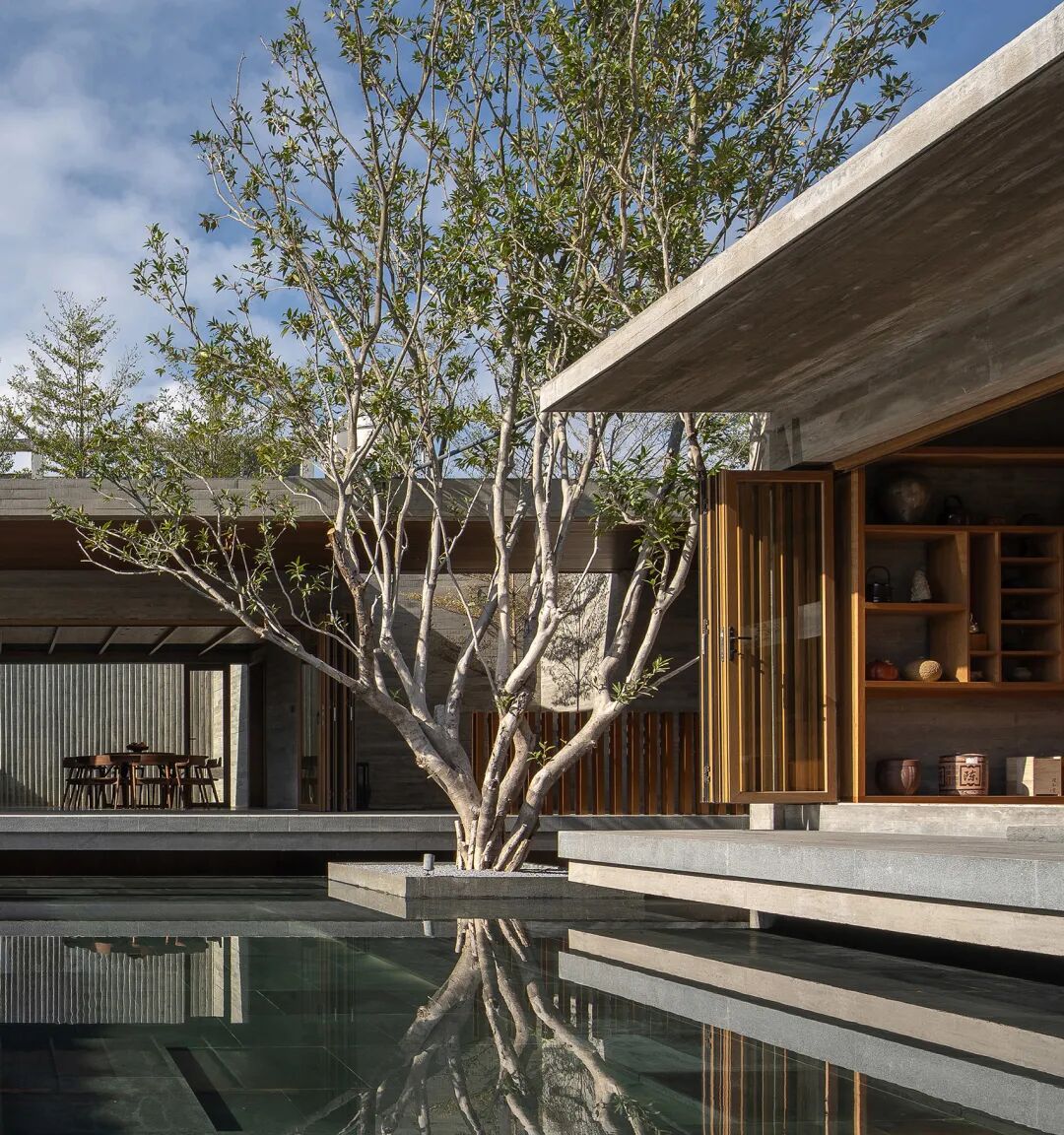 以院落为核心的房子,苗木是景观塑造中重要的方面。苗木的选择除了要和空间的气质相符外,更要考虑当地气候、日后生长、打理养护等问题。在种植完成后,庭院空间有了脱胎换骨的变化,素色的清水墙也“让步”为了树影婆娑的幕布。更叫人期待的还是若干年后,“前人栽树、后人乘凉”的景象。