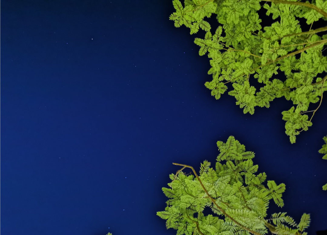 院子划分为动静两个空间,西侧院落靠近书房,低头便能看到鱼儿嬉戏,抬头则见蓝花楹飘飘洒洒。院内的蓝花楹是一年前就种下的,现已枝繁叶茂,树下作为家里的聚会空间,品茶、赏园、聊天,陪伴,心随境转,安然生活。