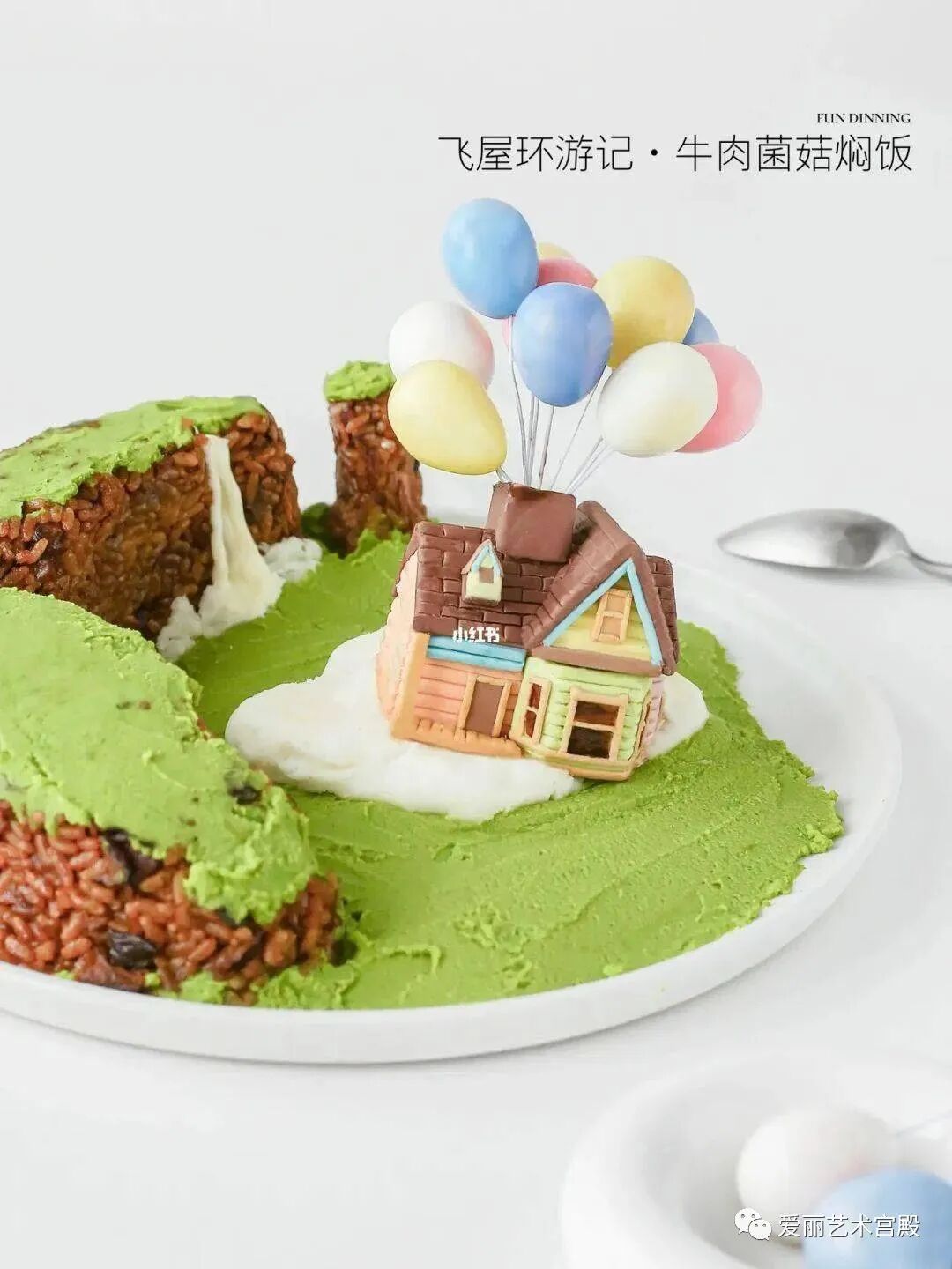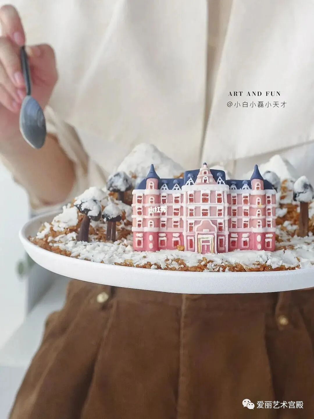 微博官方报道:酱油炒饭堆积成山林,山药泥涂抹,化作浪漫的积雪。重温韦斯·安德森的《布达佩斯大饭店》,她把粉红色的昨日世界,变成饭桌上的童话。
