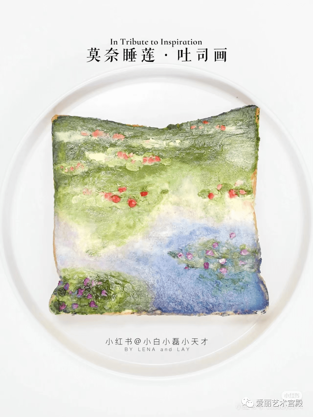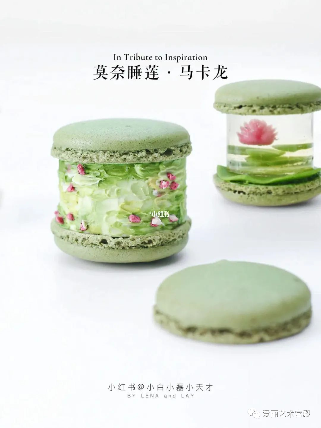 对小白来说,名画就是最好的灵感,她最喜欢的作品是《睡莲》。她说:“《睡莲》系列是莫奈艺术生涯完结的高光之作,也是艺术史上璀璨的星星。”所以,小白以睡莲为元素进行了各种各样的美食创作。马卡龙、雪糕、蛋糕、土司,甚至还有面条和饺子......怎么都玩不厌!
