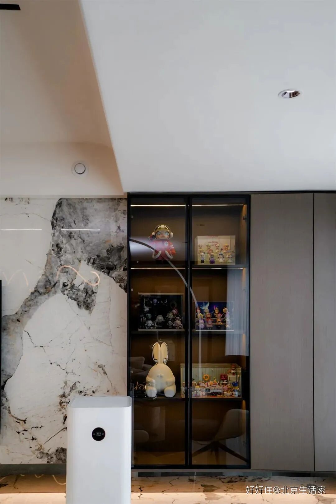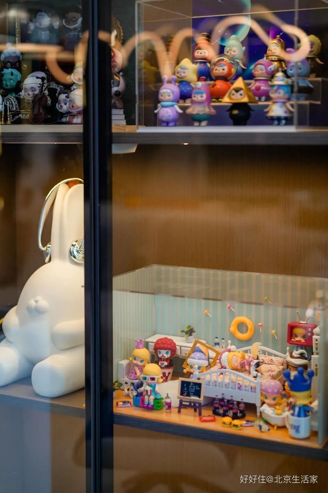 北京生活家:整个展示柜都摆上了pop mart的潮玩玩具,可爱俏皮的小摆件不仅能带来收藏的快乐,在一点一滴中也治愈了生活。
