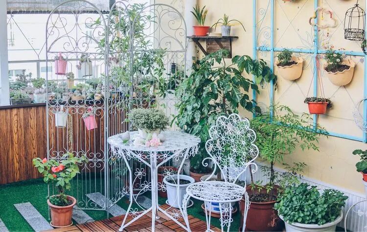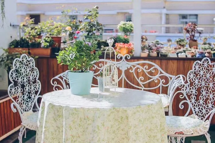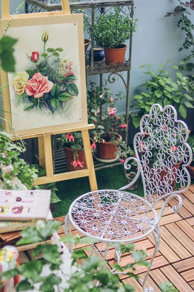 摆放着铁艺桌子和椅子,整个露台的气质突然变了。