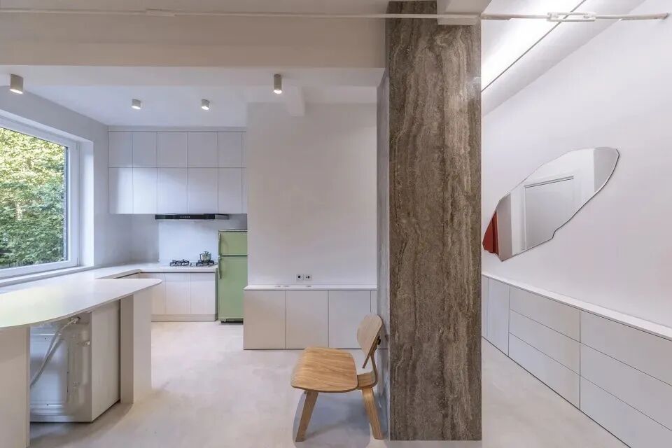 2021年,在对北京一户50年代集体公寓做改造时,有关部门觉得拆了更合适,但王左千提议进行改造试点,并在小小的公寓中打破原有格局,重新嵌入带有功能的“小盒子”,改造成符合年轻人审美和生活习惯的新家。