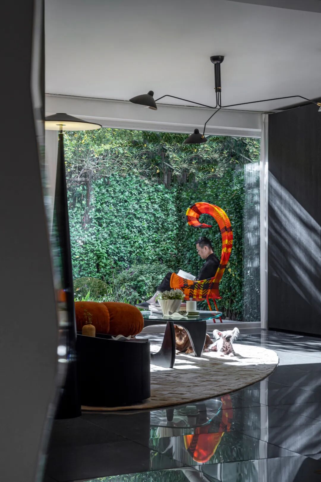 为了离植物更近一些,他打掉了一层靠花园一侧的墙,安装大幅落地玻璃。