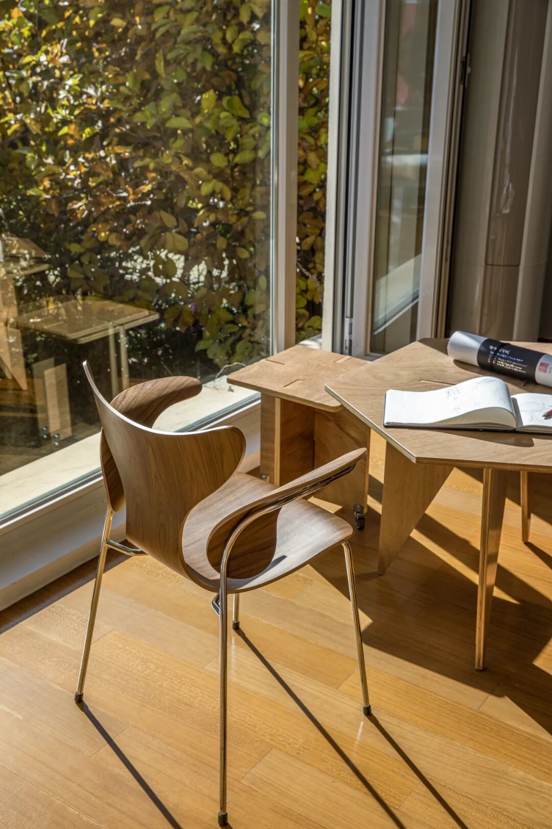 餐厅6张椅子是90年代的Fritz Hansen中古椅,书房窗边带有“翅膀”的是50周年纪念版。王左千兴奋表示:“预订一年后才收到,手工制作周期很长。”
