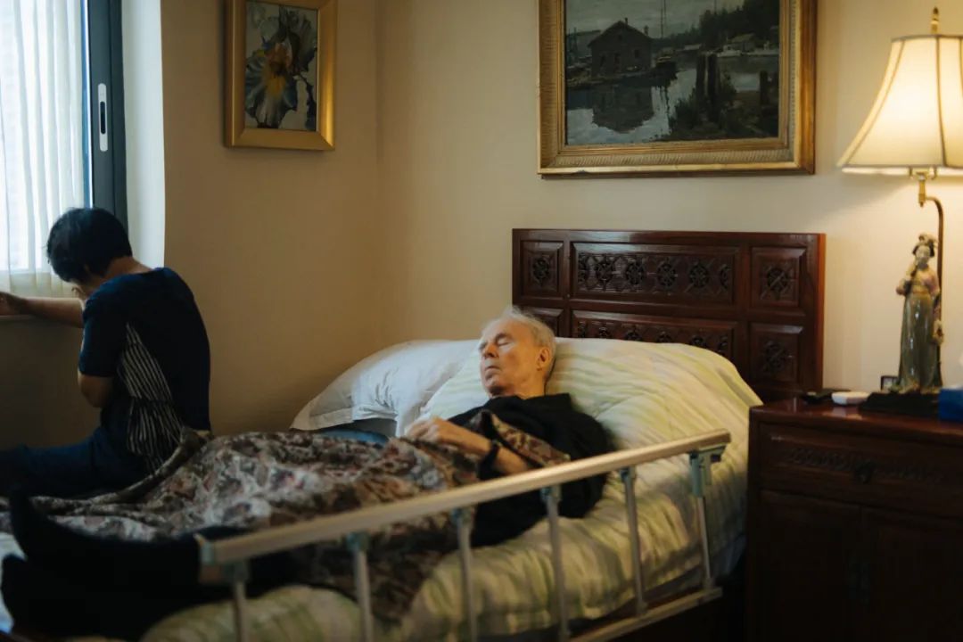 哈维是一个在中国生活30多年的美国人,他和他的妻子一直致力于设计与修复中国的中古家具。去年他的身体状况开始令妻子小波担忧。他们相伴30多年,他们都答应了对方,要笑着告别。即使早已做好准备,这样的告别速度仍然让小波无数次转身抹泪。也许YOUNG记录的是他人生最后阶段的影像,但YOUNG的镜头并没有对准那些惊心动魄的瞬间,而是日常碎片,但往往是这样的日常陪伴,藏着最深切的感情。