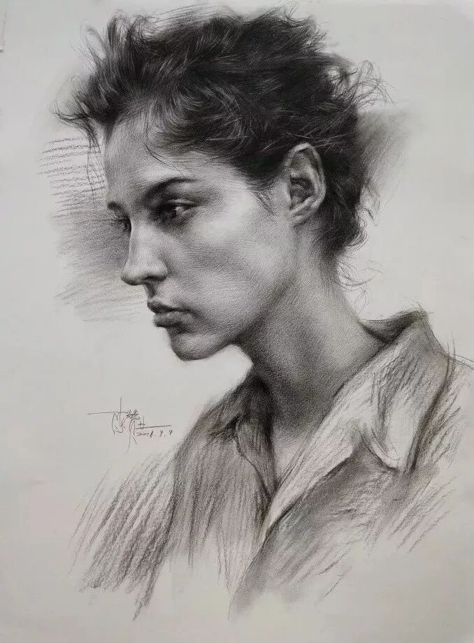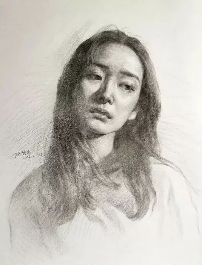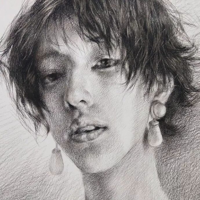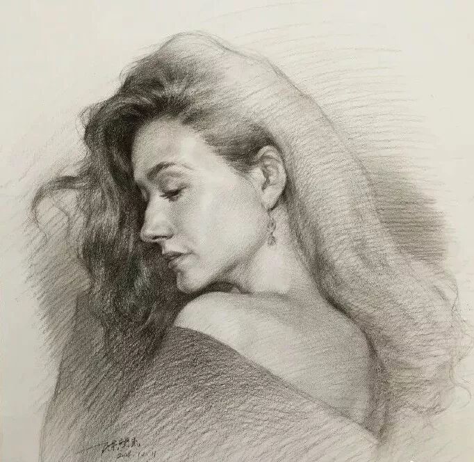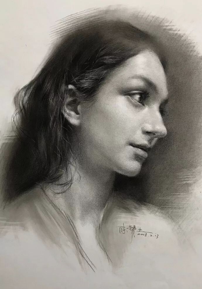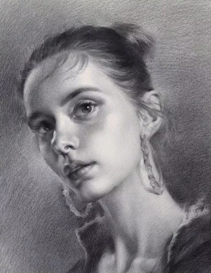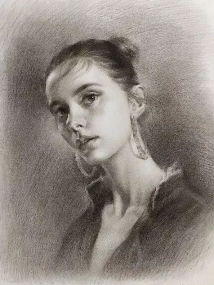 炭笔下的美女肖像光感极强,