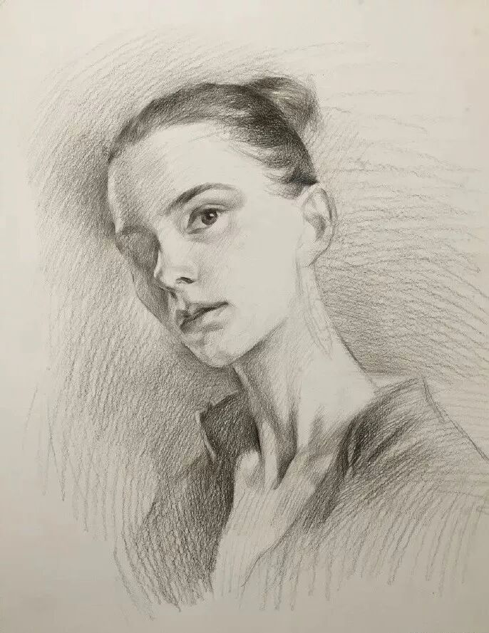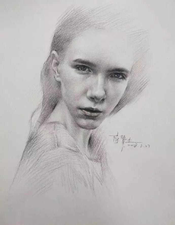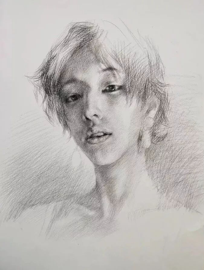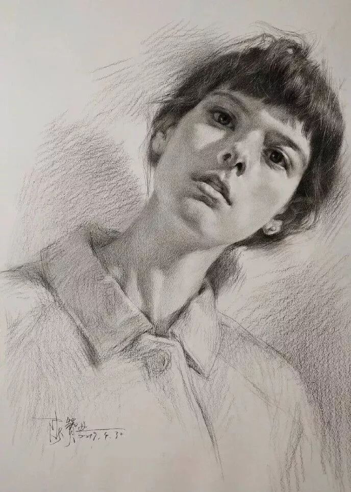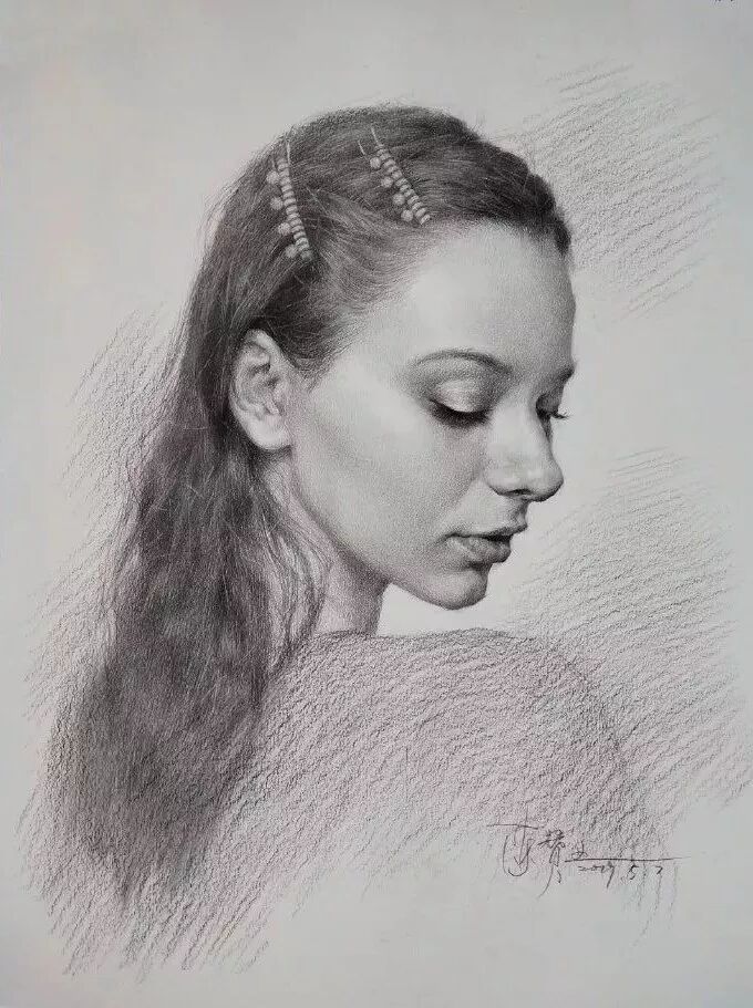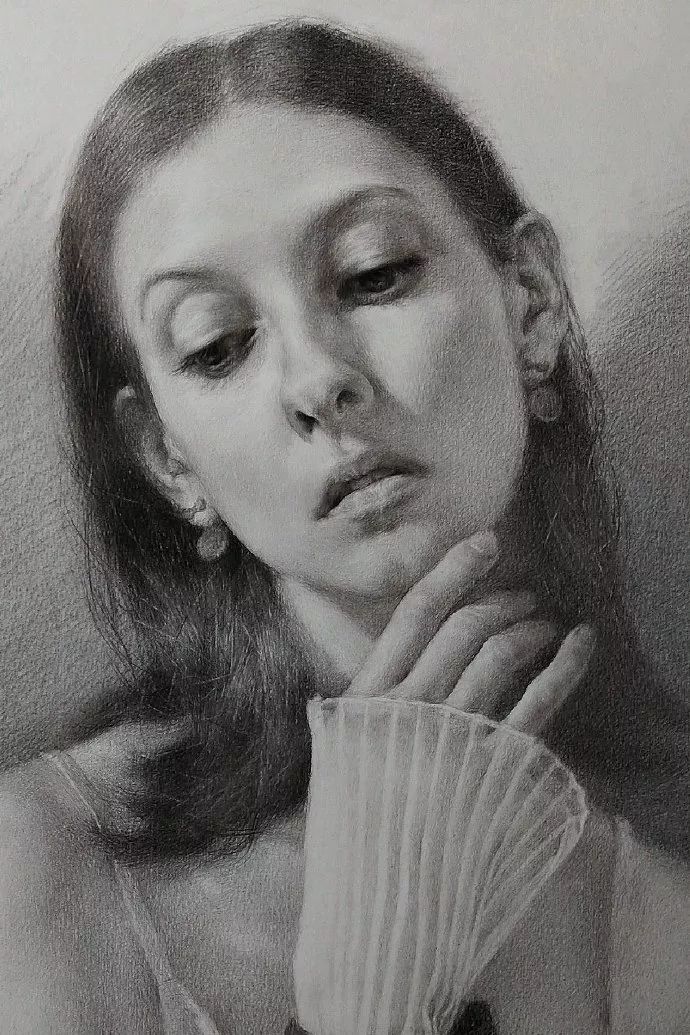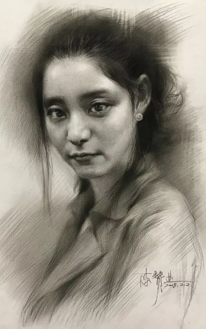 炭笔下的美女肖像光感极强,