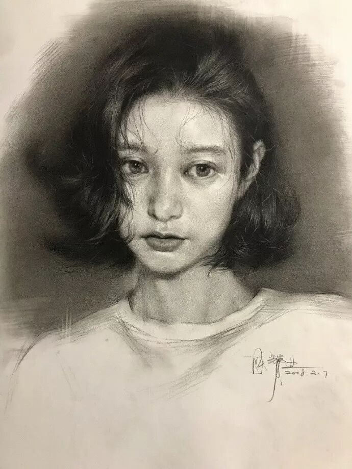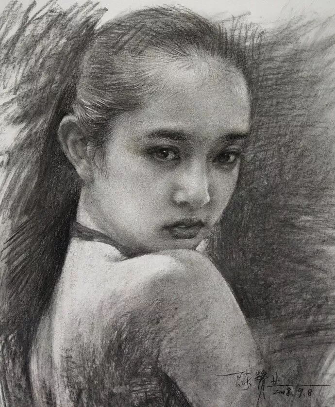 看看,炭笔下的美女