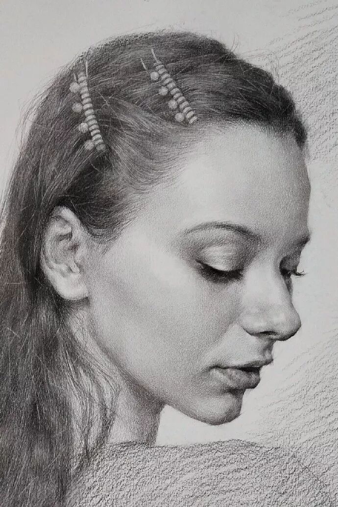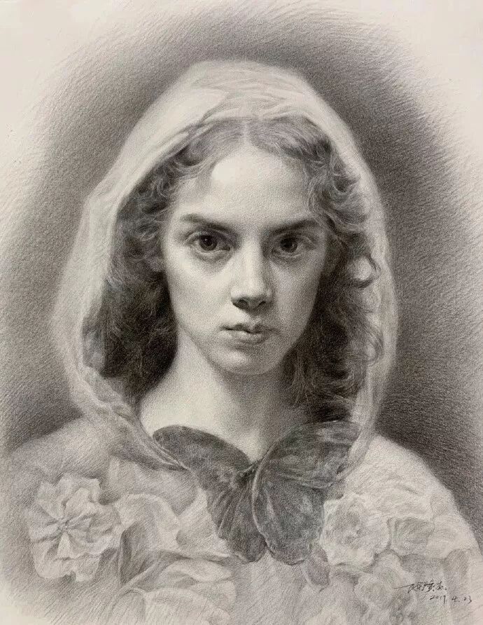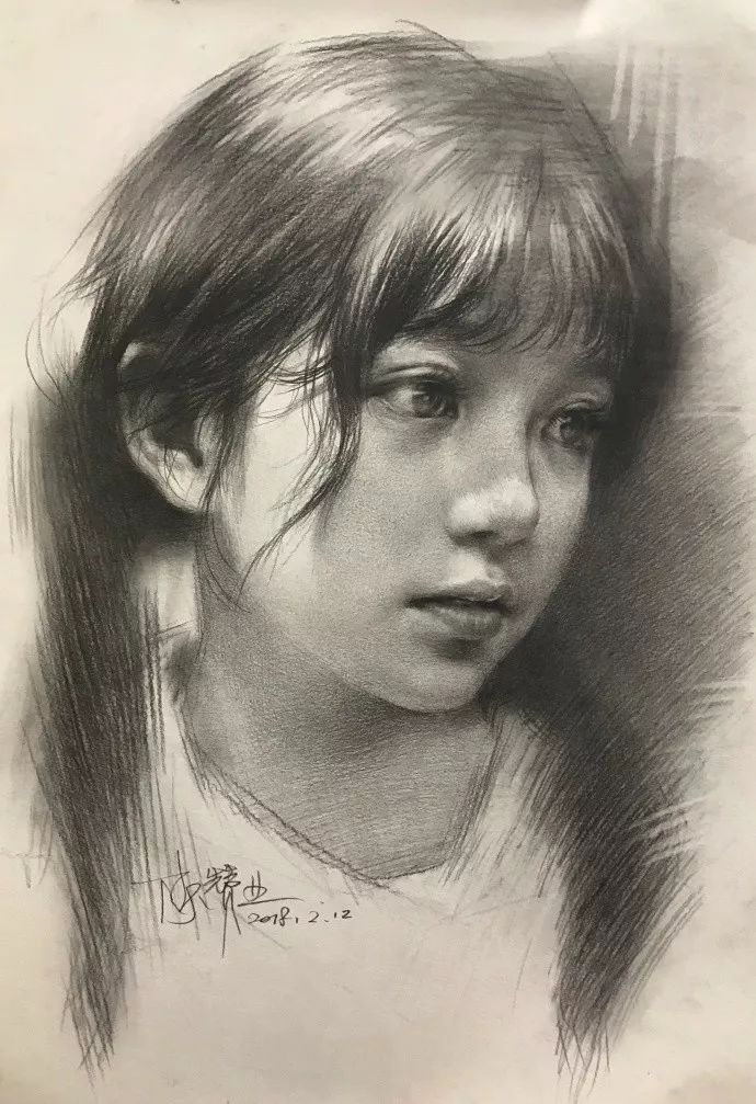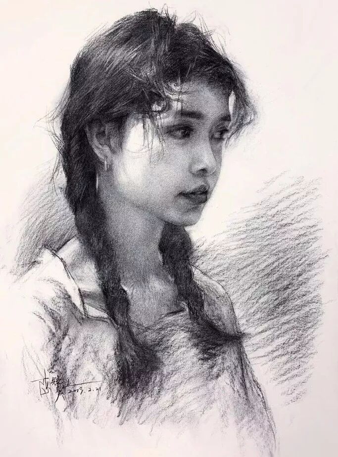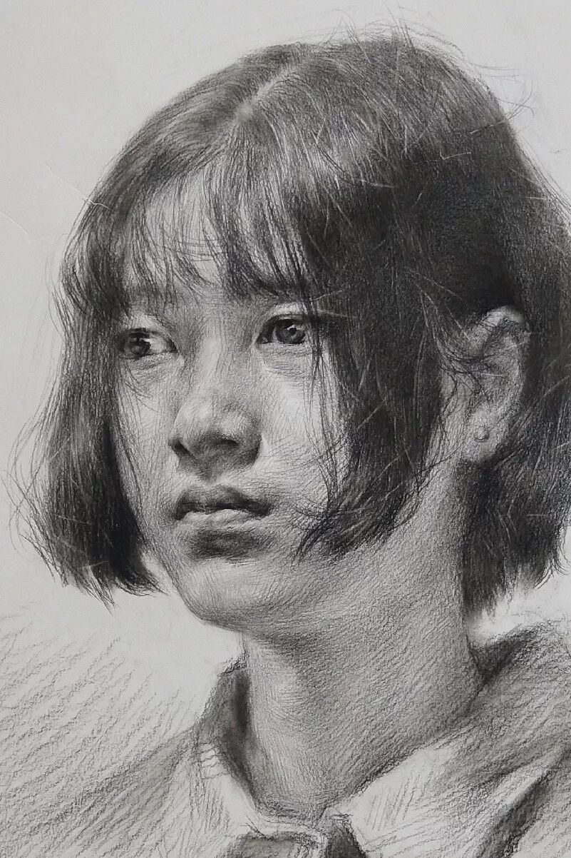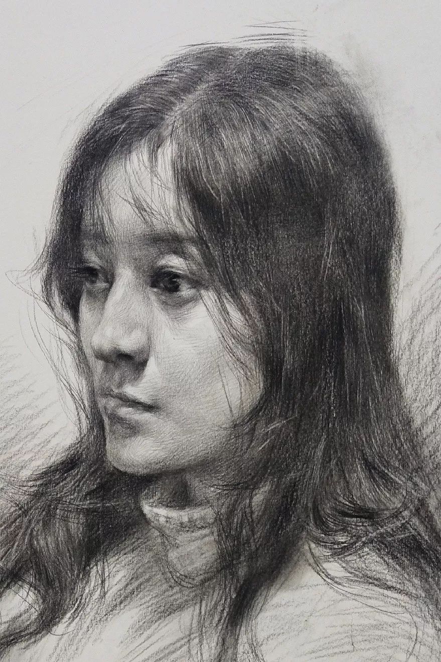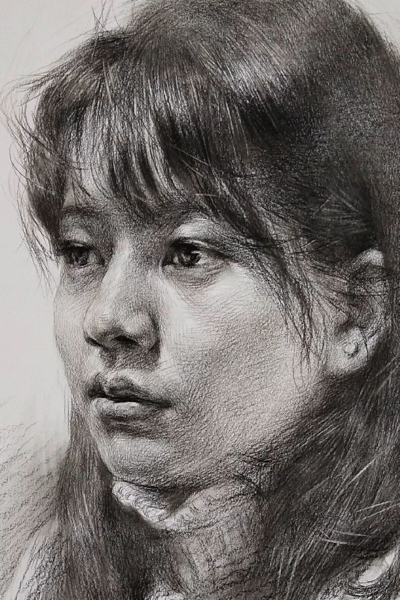炭笔下的女孩精致细腻,眉目传神。