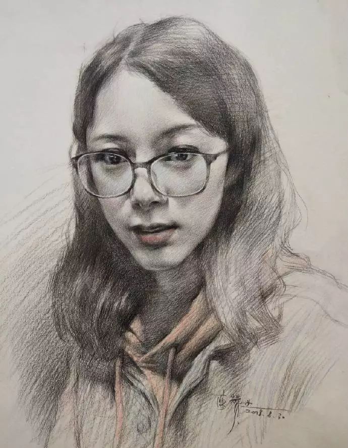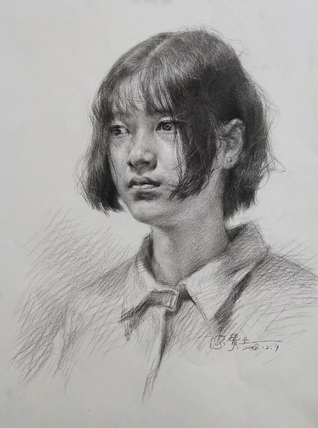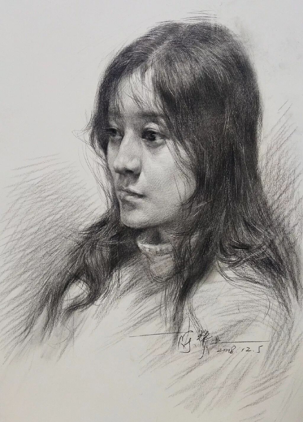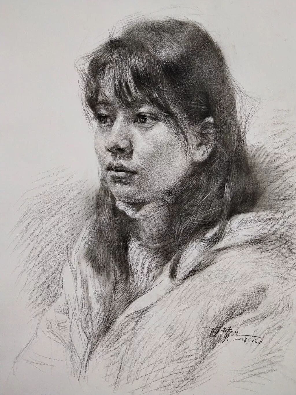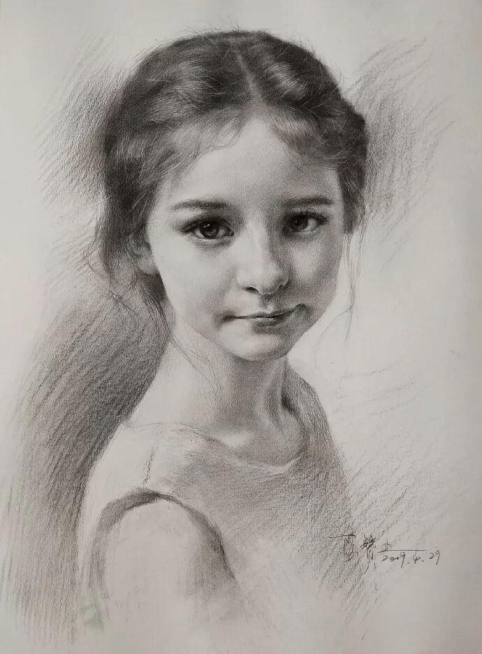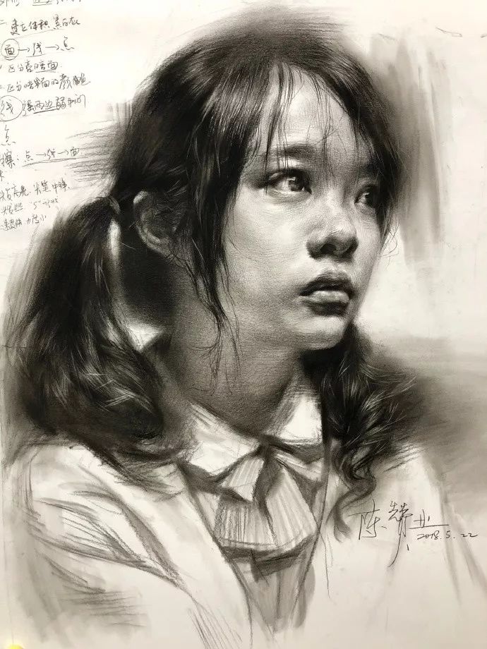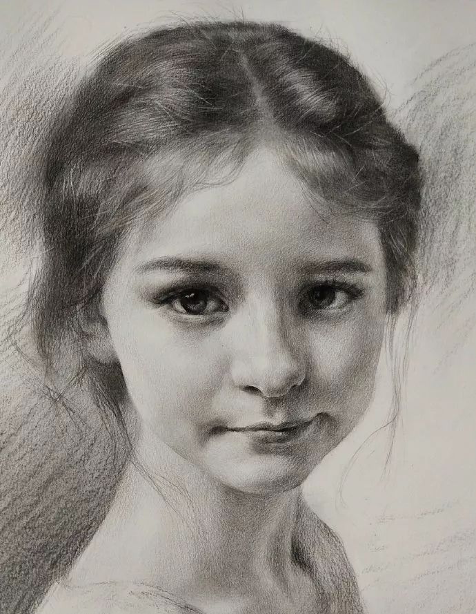 炭笔下的女孩精致细腻,眉目传神。